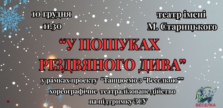 Детальніше10 грудня об 11:30 год., відбудеться хореографічно- театралізоване дійство на підтримку ЗСУ "У пошуках Різдвяного дива!" за участі народного аматорського ансамблю народного танцю "Веселка" та дитячого театру «Те.Ді.».