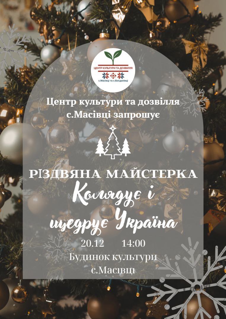 Центр культури і дозвілля с. Масівці запрошує усіх на різдвяну майстерку, яка відбудеться 20.12.25 о 14:00, щоб разом поринути у світ колядок та щедрівок!