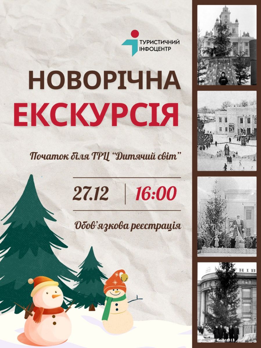 Запрошуємо на новорічну прогулянку Проскурівською — екскурсію, у якій історія міста переплітається з святковими традиціями та зимовими спогадами про те, як колись святкували переходи від одного року до іншого, які ритуали супроводжували народження нових надій і як містяни в різні епохи творили свою святкову реальність.