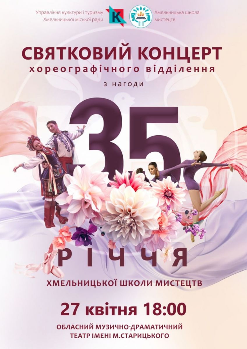 27 квітня о 18:00 в приміщенні Хмельницького академічного музично-драматичного театру ім. М. Старицького відбудеться святковий концерт хореографічного відділення Хмельницької школи мистецтв.
