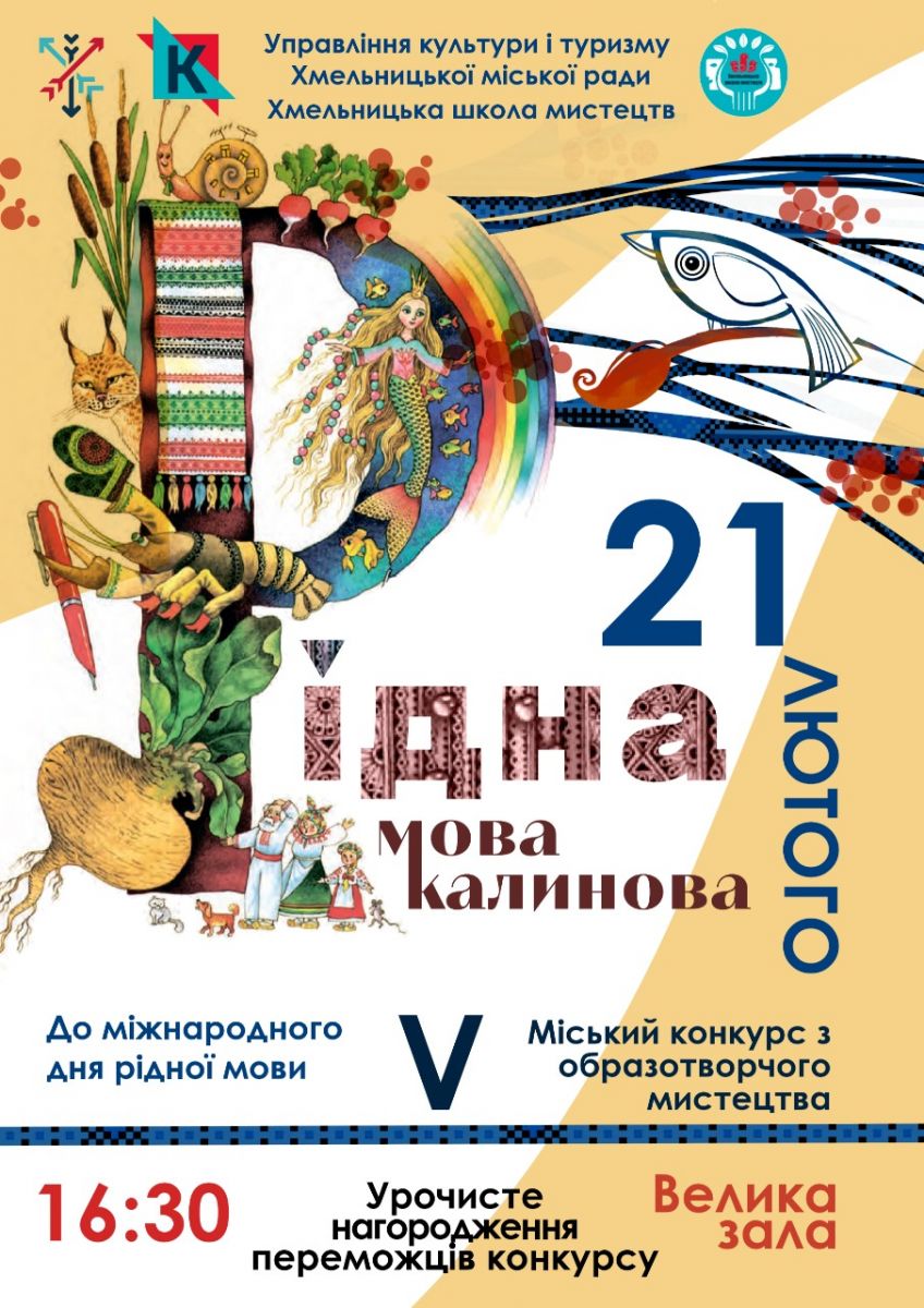 21 лютого о 16.30 у концертній залі Хмельницької школи мистецтв відбудеться урочисте нагородження переможців 5-го міського конкурсу образотворчого мистецтва «Рідна мова калинова», присвячений Міжнародному дню рідної мови. Конкурс об’єднав 188 творчих робіт, які продемонстрували багатогранність української мови через візуальні образи.
