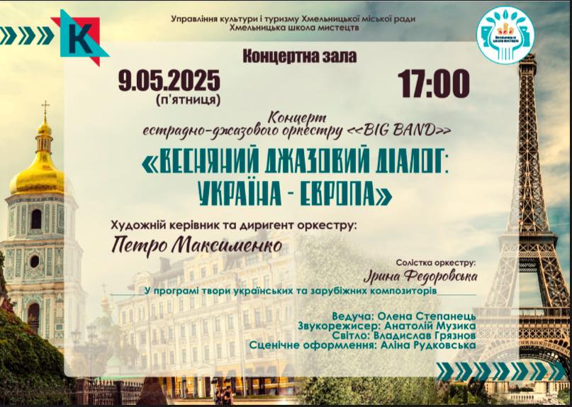 Щиро запрошуємо громаду та гостей міста Хмельницького на концерт естрадно-джазового оркестру «BIG BAND», який відбудеться 09 травня о 17:00 у концертній залі Хмельницької школи мистецтв!