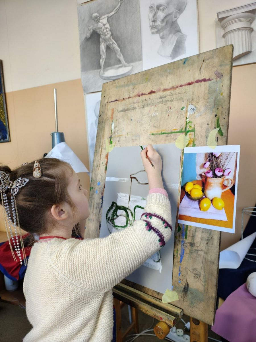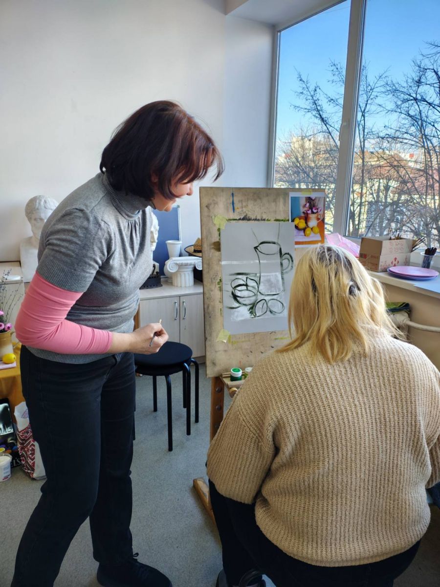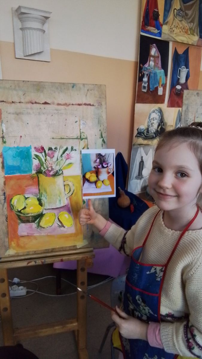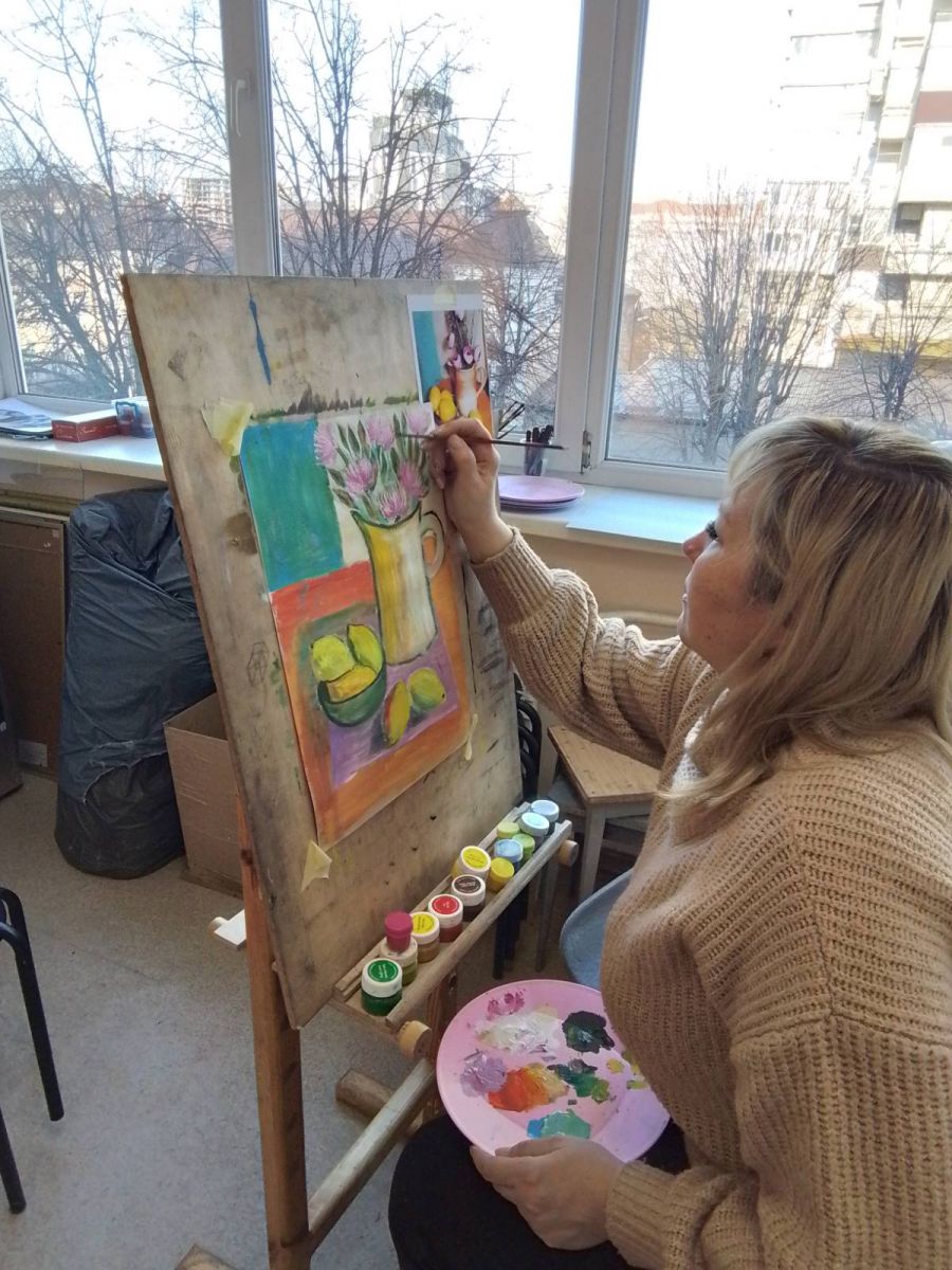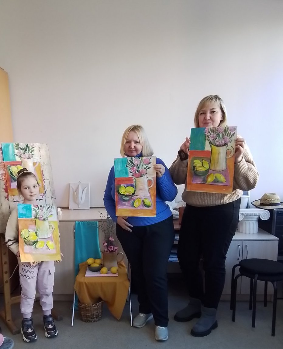 Серед жанрів образотворчого мистецтва є один, що не лише здатний розкрити внутрішній світ художника, але й змусити милуватися зображенням простих речей, на які часом у повсякденні ми не звертаємо уваги, а вони можуть багато розповісти про його власника. Цей жанр – натюрморт. З французької «nature morte» означає – «мертва натура» або «мертва природа». Зародившись як самостійний жанр у Голландії, він отримав там іншу назву «stilliven» - тихе життя, оскільки вважалось, що гарно скомпоновані в творі предмети продовжують своє внутрішнє життя. У художній школі зображення натюрмортів учні розпочинають ще у початкових класах, щораз з вищим ступенем удосконалюючи своє вміння. Здається, все дуже просто: став собі предмети (зрізані квіти, фрукти, овочі, книги, посуд тощо), створюй з них композицію і починай їх малювати. Проте це не так: потрібно, щоб кожен з них був зображений у взаємодії з іншими предметами, щоб сприймав і відбивав світло так, як це бачить око, щоб мав свою певну кольорову гаму тощо. І в цьому впевнились учасники чергового суботнього майстер-класу за донат, який проходив у Художній школі. Старший викладач Єрьоменко Наталія Юріївна, що його проводила, має не лише освіту, вміння, але й гарний досвід, який вона передає своїм учням, а також всім, хто забажає доторкнутись самостійно до такого заманливого заняття як образотворчість. І хоча цього разу бажаючих було небагато, всі залишились задоволеними отриманими навичками і повним задоволенням від спільної творчої праці. А скринька поповнилась грошовими донатами для ЗСУ.