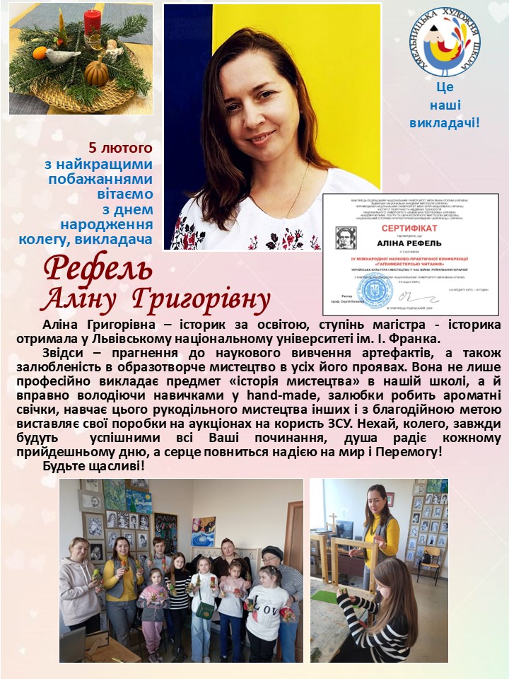 Побажаймо їй успіхів у житті і творчості, сімейного благополуччя і щастя!