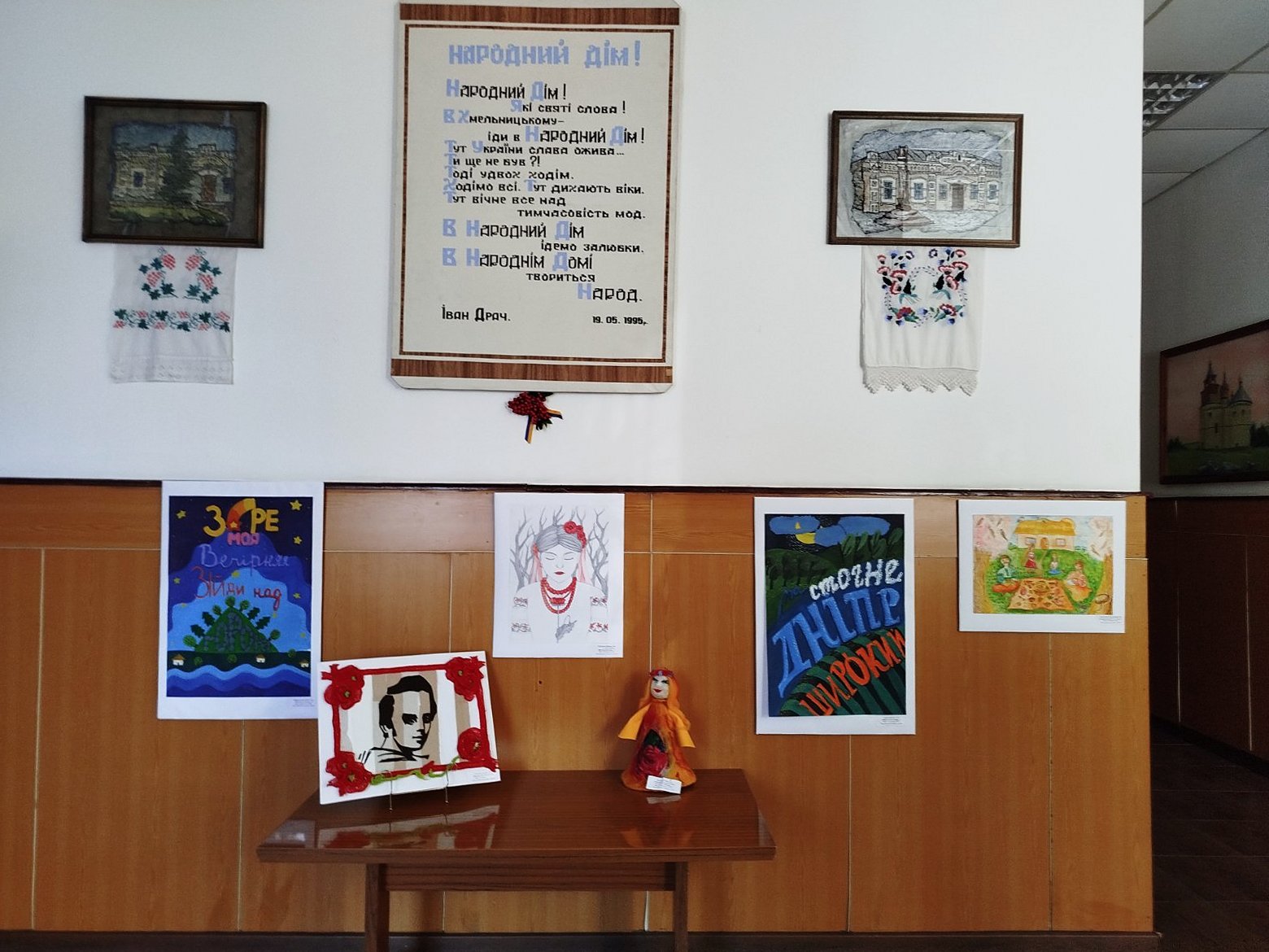 Таку назву має міні-виставка, що з 7 березня працюватиме у фойє Народного дому «Просвіта». Твори були ретельно відбирані з-поміж тих, які були представлені учнями на І етап Всеукраїнського конкурсу учнівської творчості «Об`єднаймося, ж, брати мої!», який щорічно проводиться в Україні до Шевченківських днів і присвячений Великому Тарасові Шевченку. Хмельницька художня школа провела в себе відбірковий конкурс, із 40 робіт, представлених на нього, на ІІ етап було відібрано 32 роботи, з яких на ІІІ етап (обласний) потрапили 14 творів, з них 7 – образотворче мистецтво, 7 – декоративно-прикладне. Саме ці роботи і були сфотографовані, вписані у заявку і разом з фото відправлені на відбір робіт у ІІІ етапі для Києва, для розгляду на всеукраїнському рівні. Обласне журі, працюючи цьогоріч онлайн, вирішило, що 2 роботи заслуговують на грамоти. Є надія, що у наступні роки роботи школи поїдуть і до Києва, як це вже бувало зовсім недавно. З тих робіт, які отримали позитивні оцінки на шкільному конкурсі, для виставки в Народному домі відібрали лише ті, в яких напряму відбувається або цитування рядків з поетичних творів Тараса Шевченка, або до них створена ілюстрація. А оскільки експозиційні площі вимагали обмежень у кількості, було погоджено представити 13 робіт. Їх можна побачити на світлинах тут або ж піти до міської «Просвіти», що носить ім`я Великого Тараса, і там насолодитись зустріччю з рядками Шевченка в інтерпретаціях юних художників. Побажаймо Народному дому, учням, їх батькам та наставникам – скорішої Перемоги України, миру, спокою, успіхів у різноманітних починаннях і великої шани та любові до творчості нашого Пророка – Тараса Григоровича Шевченка!