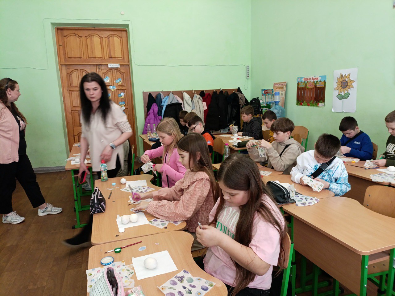 Зустрічаємо Великдень з гарним настроєм та з чудовими яєчками у стилі декупаж. Директор Юлія Неліна та заступник директора Ольга Войтюк Хмельницької школи іконопису «Нікош» провели майстер-класи для учнів 4-Б та 4-Г класу Гімназії № 20 ім. С.Єфремова. Створювали неймовірно гарні та ніжні декупажні прикраси для святкового кошика. У кожного учня вийшли неповторні яєчка.