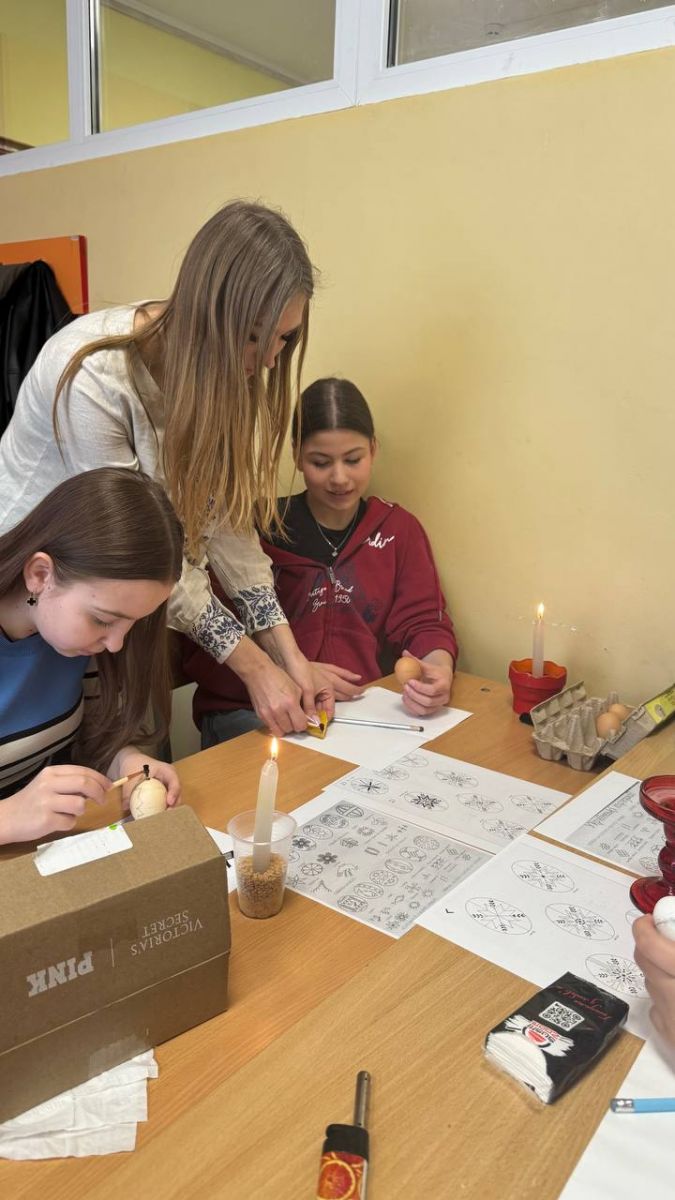 Усі присутні із захопленням вчилися власноруч майстерності виготовлення писанки із різними орнаментальними мотивами, кожна писанка із звичайного курячого яйця перетворювалася на маленький світ – тут і квіти, і дерево життя, і символи сонця, і різні геометричні фігури.