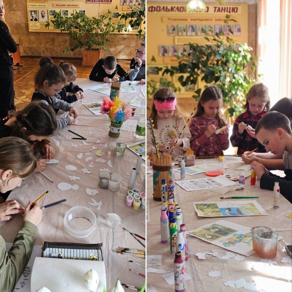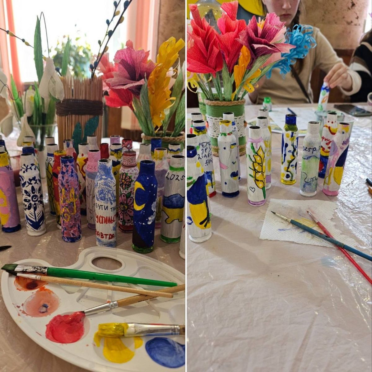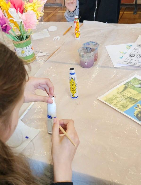 Учні творчих колективів Центру національного виховання учнівської молоді з душею і натхненням взяли участь у майстер-класі, де розмальовували гільзи, передані нашими захисниками із Сумського напрямку.