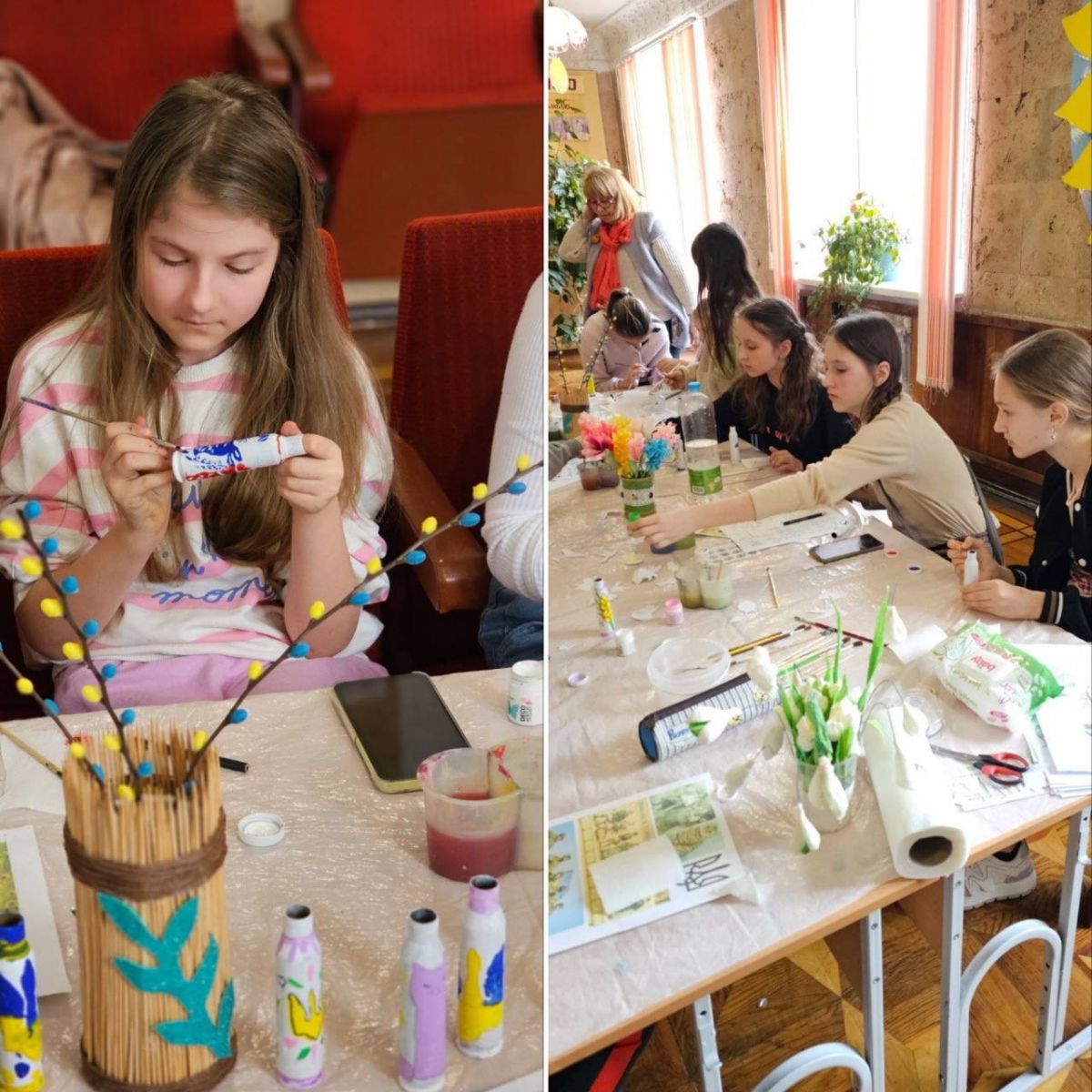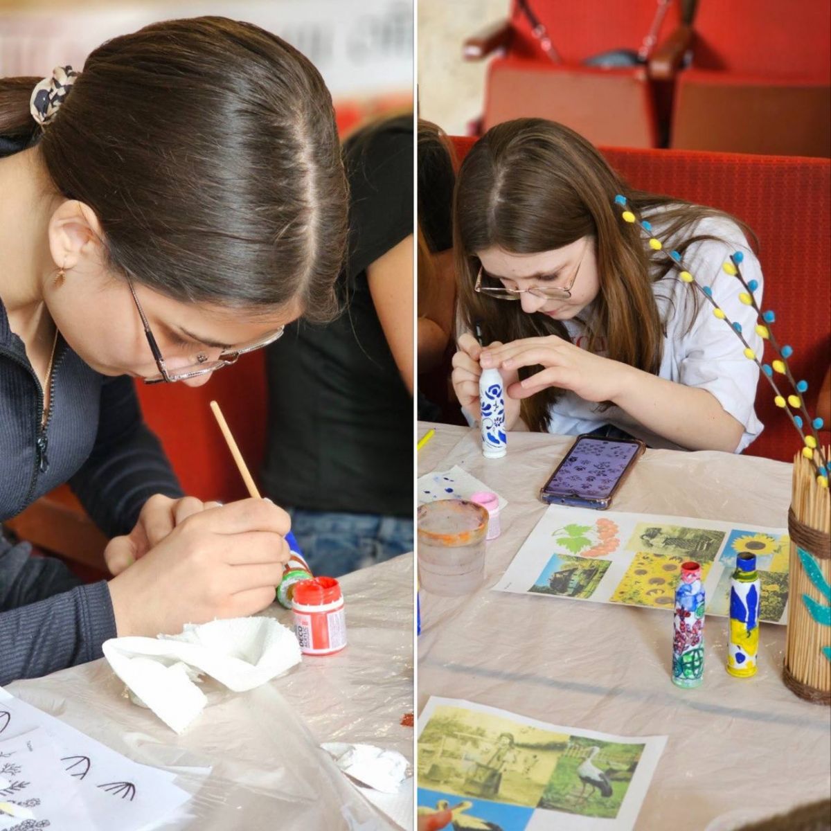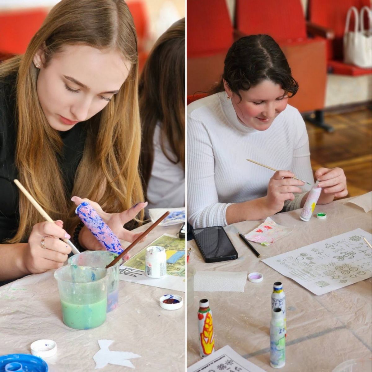 Учні творчих колективів Центру національного виховання учнівської молоді з душею і натхненням взяли участь у майстер-класі, де розмальовували гільзи, передані нашими захисниками із Сумського напрямку.