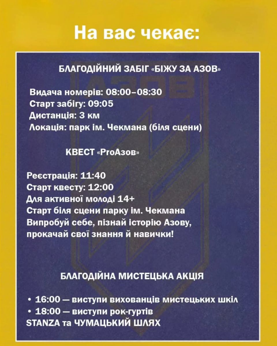 В парку культури і відпочинку ім. М. Чекмана відбулась концертна програма творчих колективів Центру національного виховання учнівської молоді, приурочена до 11-ї річниці створення 12-ї бригади легендарного полку «Азов».