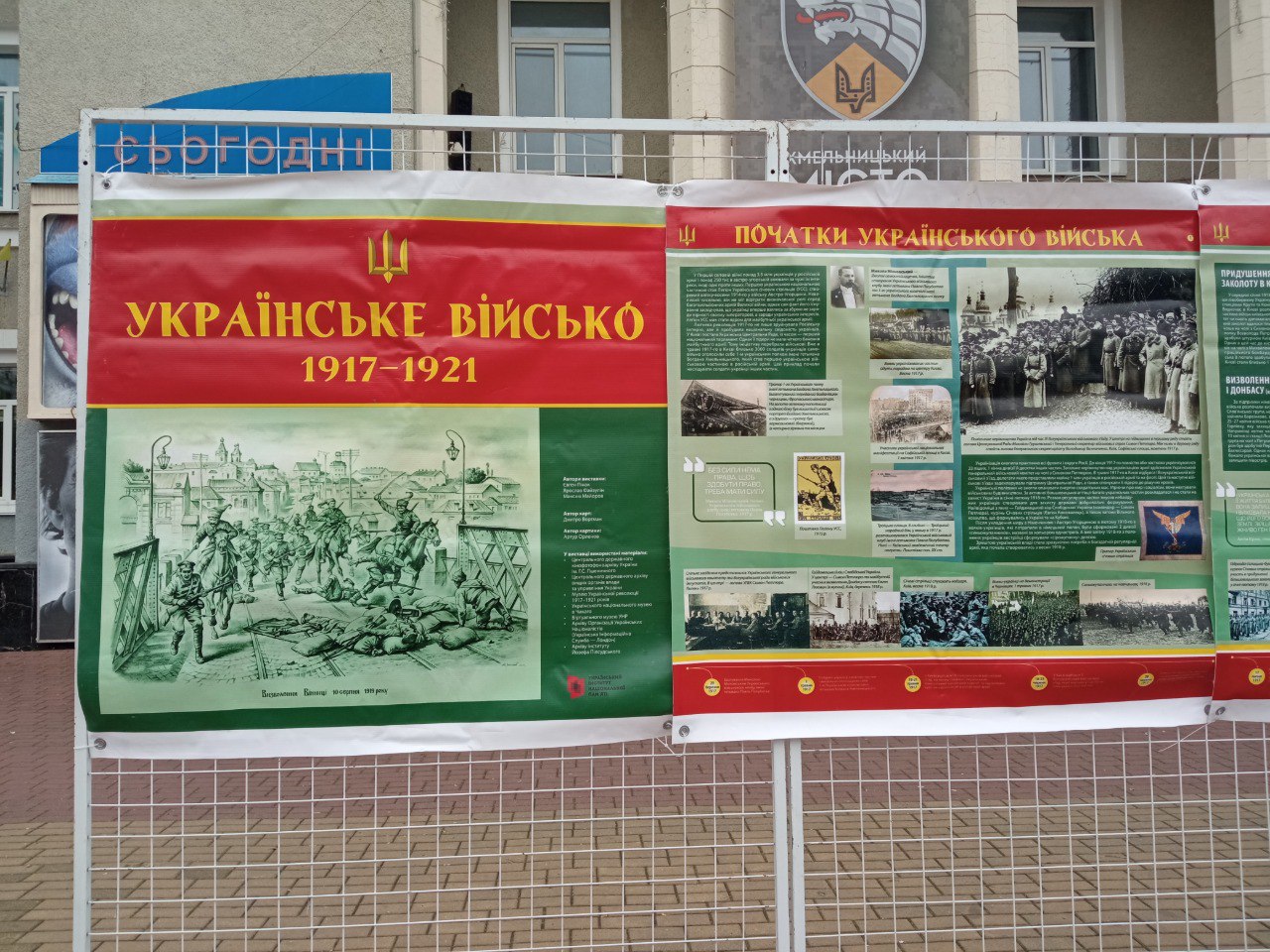 У День Героїв музей історії міста Хмельницького презентує на майдані перед кінотеатром імені Т. Г. Шевченка експозиції, присвячені історії та символіці Українських Збройних Сил.