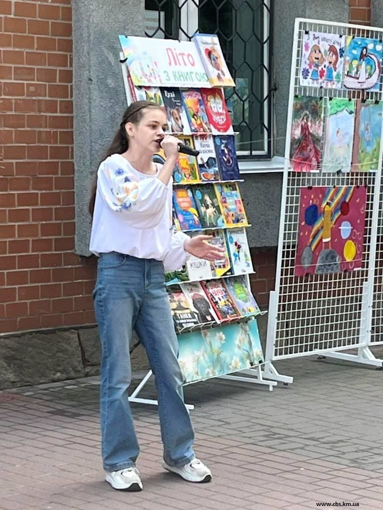 А ведучими були учасниці дитячого театру «Те.Ді.» Хмельницького міського будинку культури Софія Подолянчук та Мілана Кушнір. «Багато дитячих посмішок — і це головне, це те, чого ми всі прагнемо. Навіть сонце не втрималося — таки вибігло. Попри нічну тривогу, клопоти й турботи діти мають жити своє дитинство. І воно, я вважаю, має бути саме таким — з книгами, з читанням, з бібліотекою», — каже мама однієї з активних читачок.