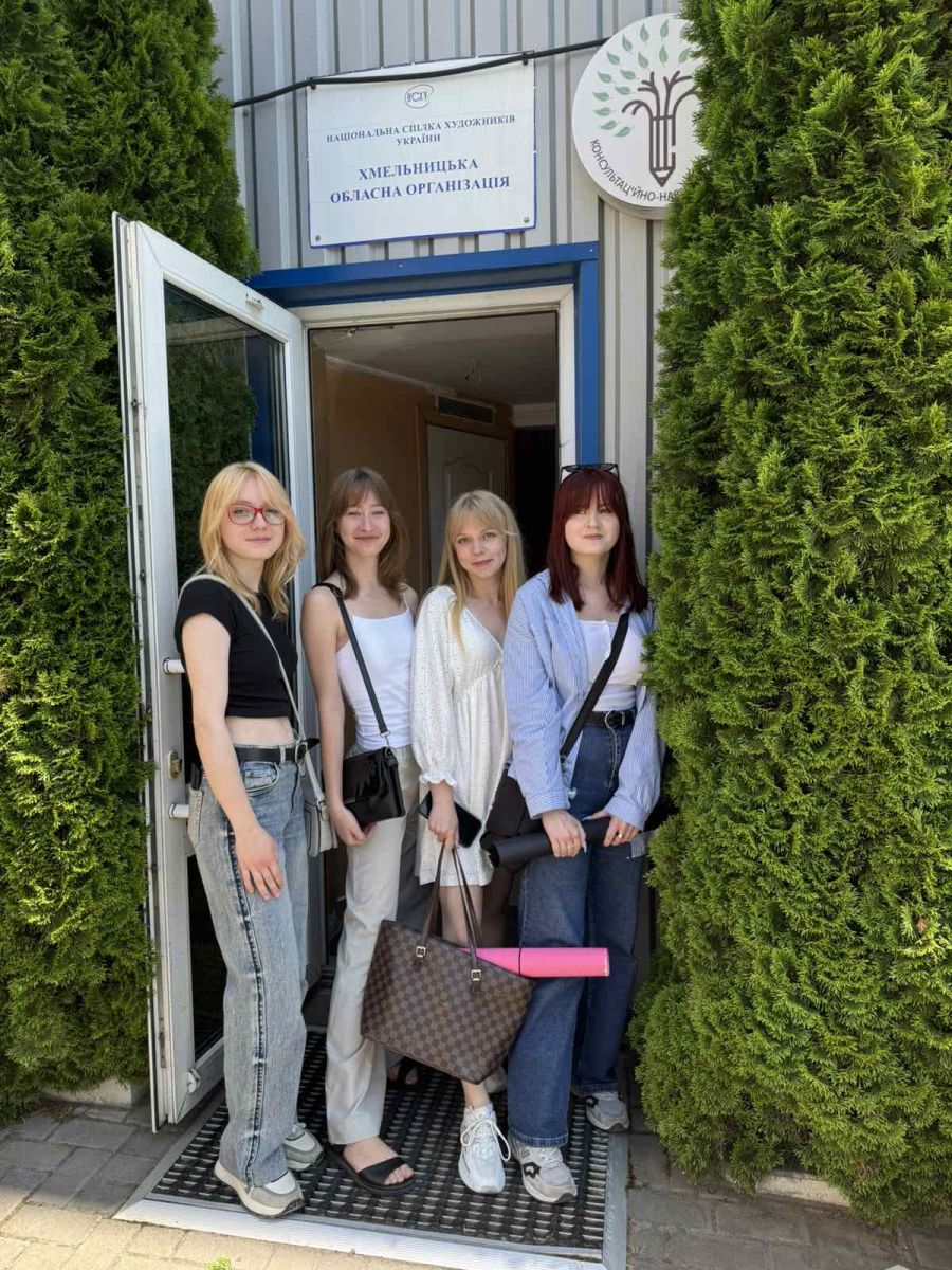 Нині в Хмельницькій художній школі – гаряча пора. Четверокласники - випускники базового підрівня готуються до випуску. Хтось ще щось домальовує до виставки, хтось ще «закриває» незакінчене, а ось чотири юнки, що відмінно навчались і все зробили вчасно, мають нагоду і можливість подивитись на світ, який їх манить і приваблює – на «святая-святих» художника – його творчу майстерню. Адже вони на цей момент вирішили, що все ж таки спробують у майбутньому стати художницями! Викладачка школи Анна Скрипало, яка є членкинею Національної спілки художників України, домовилась з мистцями, які на цей час перебували в своїх майстернях-ательє, щоб вони показали, як і над чим нині працюють. Зустрів майбутніх художниць голова Хмельницької обласної організації НСХУ Микола Мельничук – відомий художник у кількох видах мистецтв – живописі, графіці, а також як майстер декоративно-прикладного мистецтва – вправний різьбяр і оздоблювач церковних храмів.