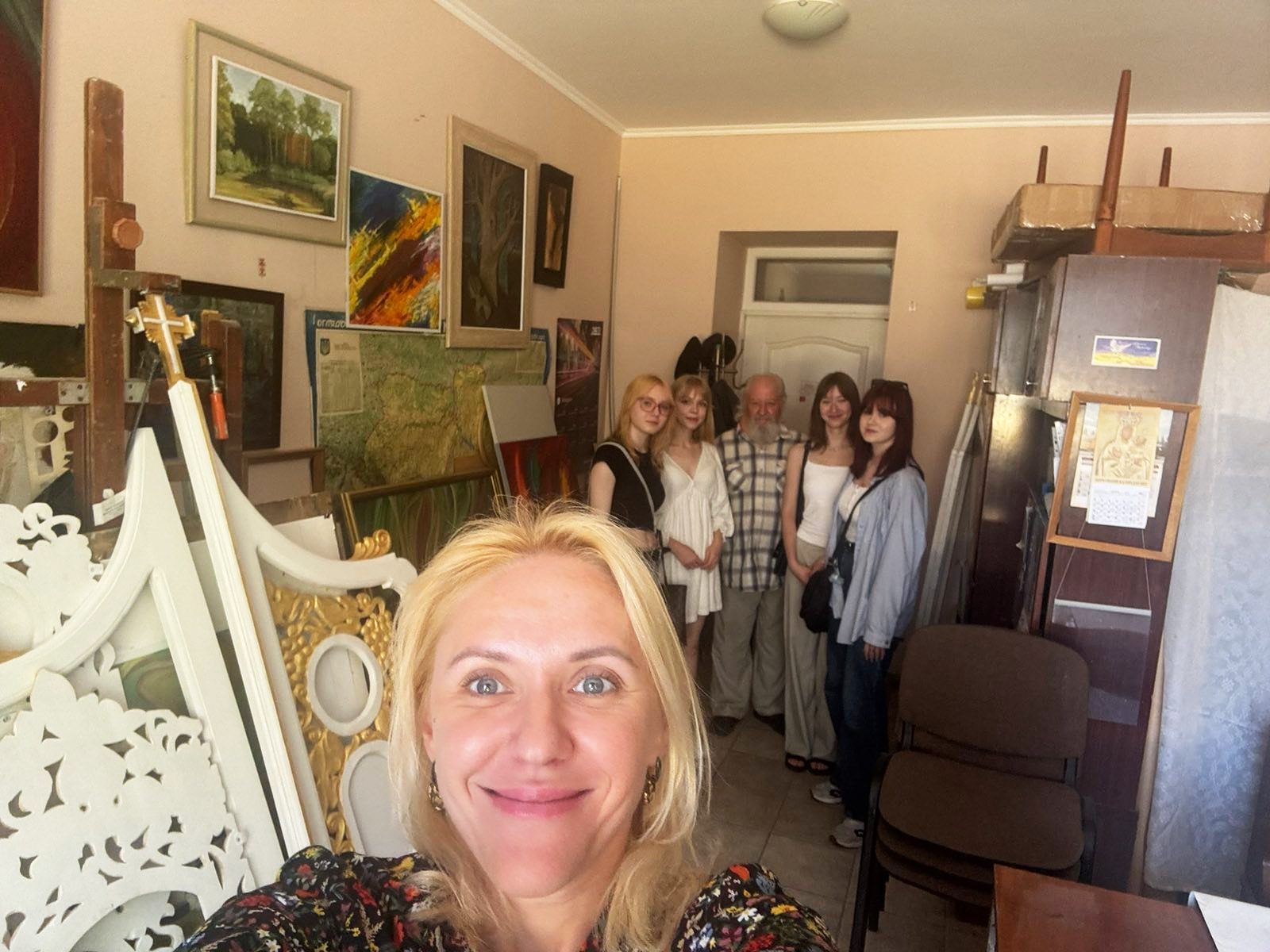 Гості оглянули «царські врата», які були майже готові, а також познайомились з живописною манерою Миколи Леонтійовича, побачили його твори. Наступна незабутня зустріч була з талановитою літописецею нашого краю – Неллі Павловою. Її майстерня, щільно заставлена і завішана її творами, є своєрідним авторським музеєм, де можна побачити роботи художниці різних років зі смаком і любов`ю написані, збережені і розташовані.