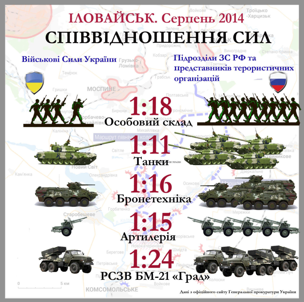29 серпня 2014 року під час виходу сил АТО з оточення під Іловайськом російське керівництво порушило домовленості і ворожі збройні сили впритул розстріляли з важкого озброєння колони українських військових. Таке віроломне вбивство кваліфікується міжнародним гуманітарним правом як воєнний злочин. Тоді полягло 366 українських воїнів, 429 зазнали поранень, 158 зникли безвісти, 300 опинилися в полоні.