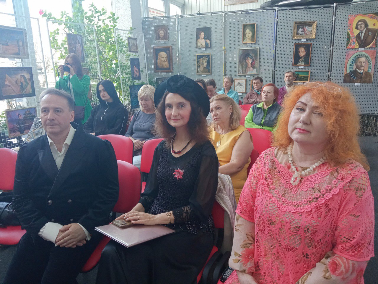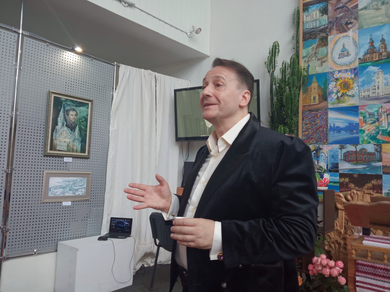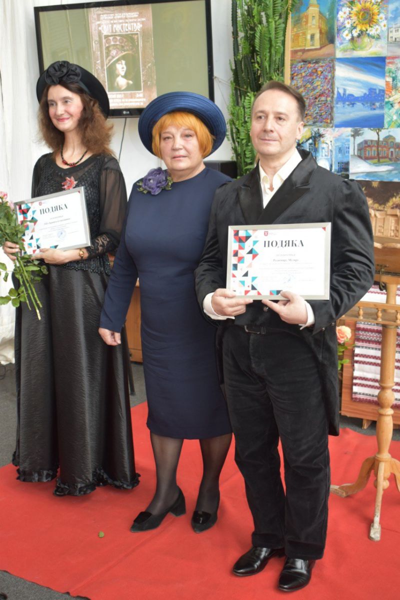 Пані Вікторія привітала добрих друзів музею з 15-літтям праці громадської організації, подякувала за громадську активність, бажання натхненно співпрацювати у такому чудовому творчому тандемі, відкритість, творчий неспокій, готовність до нових проєктів. А також провела невеликий екскурс в історію виникнення та побутування мистецького напрямку модерн, котрий став темою творчої зустрічі і з котрим тісно пов`язаний розвиток культури та, зокрема, архітектури нашого міста. Адже ще й нині, мандруючи вулицями Хмельницького, можна відчути романтику архітектури своєрідного цегляного стилю, або стилю модерн, в якому побудовані старовинні будівлі тодішнього Проскурова в кінці ХІХ на початку ХХ століття. І недаремно організатори виставки, фахові художники, мистецтвознавці взяли за фон для афіші із зображенням актриси Віри Холодної роботи Ірини Стасюк старовинні різьблені двері в стилі модерну, котрі ще й досі прикрашають вхід до однієї з найстаріших будівель на вулиці Проскурівській – ілюзіону «Модерн», де нині розміщена Хмельницька музична школа № 1 імені М. Мозгового, в якій працює співголова ГО «Спадщина» викладач, концертмейстер Тетяна Чигрин. Цікаві мистецько-історичні паралелі! Недаремно одна із експоненток нової виставки, талановита художниця, учениця Радимира Міляра, Ірина Стасюк дуже майстерно зобразила портрет славетного київського архітектора Владислава Городецького, котрий проєктував свої відомі будівлі в стилі модерн на зламі ХІХ та ХХ століть, і котрого називали «київським Гауді». Славнозвісний київський «будинок з химерами» за його проєктом має свого «побратима» - «будинок з драконами» невідомого архітектора в нашому місті, на історичній вулиці Проскурівській, в якому нині діє все та ж музична школа № 1. Пані Вікторія повідала й інші цікаві подробиці та провела історичні паралелі, розкриваючи тему « Проскурів та мистецтво у стилі модерн».