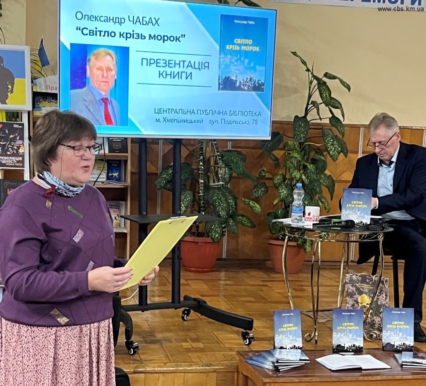 27 листопада свою поетичну збірку в Центральній публічній бібліотеці м. Хмельницького представив письменник, учасник АТО 2017-го року, офіцер, викладач Олександр Чабах. Книга зветься «Світло крізь морок» і є щирим свідченням правди. У ній автор сміливо говорить про важливе.