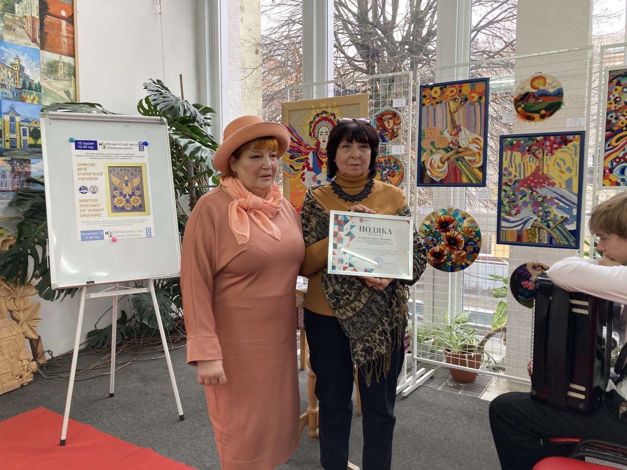 Невипадково відкриття виставки «Зимові мрії сонячної України» зібрало чимало шанувальників декоративного мистецтва в музеї історії міста Хмельницького саме в особливо енергетичну грудневу дату: дванадцятого дванадцятого о дванадцятій. Такі дзеркальні дати завжди привертають увагу, створюючи відчуття символічного вікна долі, коли енергія дня, місяця, року сходиться в одну точку. І 12 грудня – одна з таких дат: це день, коли бажання звучать голосніше, а думки матеріалізуються швидше. І цього дня всі присутні, надихаючись сонячною палітрою сучасної української текстильної етніки, бажали одне одному перемоги України та вголос висловлювали думки про збереження національного мистецького спадку та його інтегрованість у сучасність.
