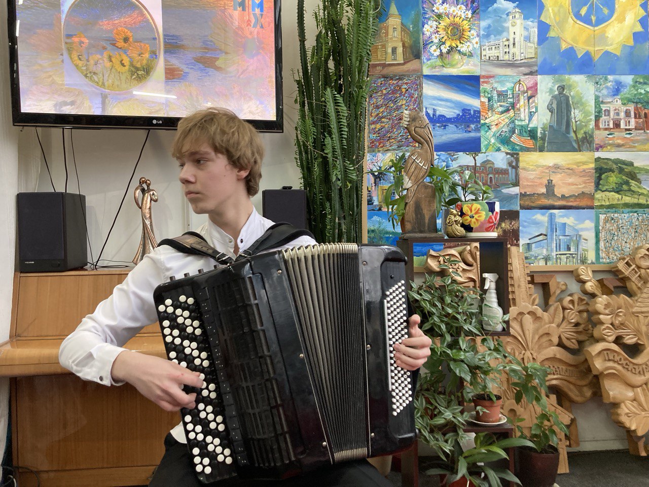 Музичним оздобленням етномистецького івенту став віртуозний інструментальний виступ Євгенія Лищука, студента ІІ курсу Хмельницького музичного коледжу імені Владислава Заремби, який натхненно виконав на баяні концертну мініатюру Віктора Власова «Босса Нова» та «Коломийки» з «Української сюїти № 3» Володимира Зубицького.
