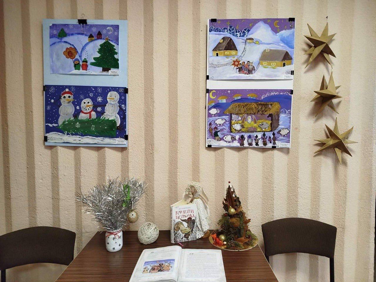 І хоча напряму в творах дітей, що з 19 грудня демонструються у Відділі мистецтв Хмельницької обласної бібліотеки ім. Т.Г. Шевченка, це не показано, все одно всі роботи сповнені тепла, добра і дитячої безпосередності, адже «Христос ся рождає! Славімо Його!». Особливо це красномовно підтверджено в роботах «Шопка», «Коляда», «Світло Різдвяної зірки», «Світле свято», «Різдвяне диво», «Різдвяна казка» та інших. Певна кількість творів присвячена зимі взагалі, дитячим зимовим розвагам, прийдешньому Новому року. Приходьте, будь ласка, у бібліотеку на знайомство зі змістовними, яскравими і добрими творами наших учнів! Заодно запишіться і візьміть книжечку почитати, бо працівники Відділу мистецтв приготували чудові книжки про Різдвяне свято!