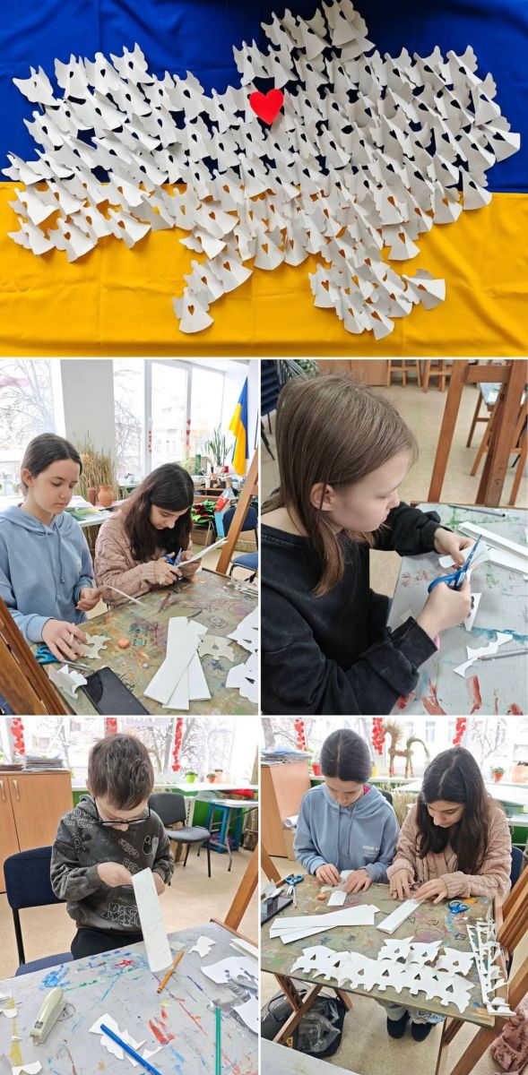 Майстер-клас провела викладачка школи мистецтв «Райдуга» Олена Наумець. Діти виготовили паперових журавликів — символи пам’яті, надії та вдячності.