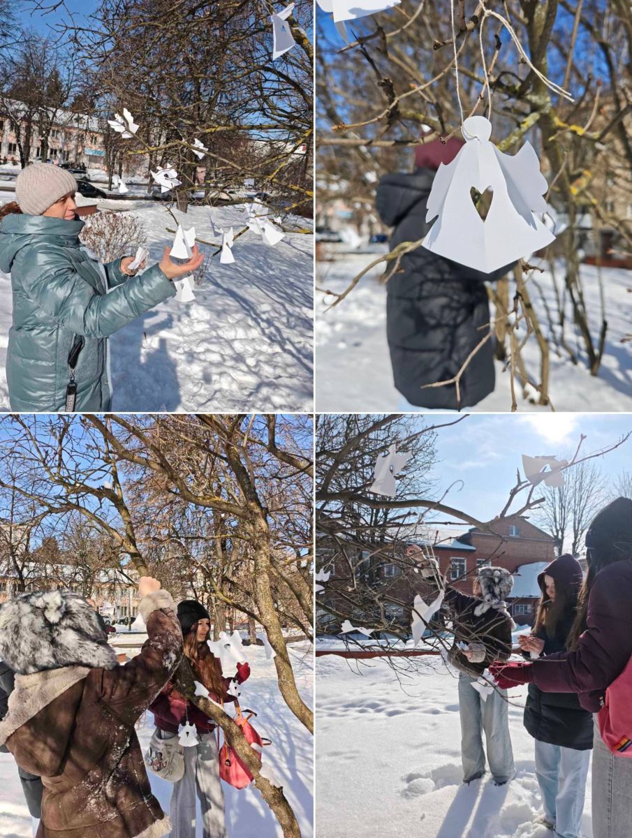Наші наймолодші вихованці — учні першого класу — власноруч виготовили 100 білих паперових янголів. Кожна фігурка — це символ чистої душі, що віддала життя за нашу свободу, та знак того, що подвиг Героїв назавжди залишиться у серцях українців.