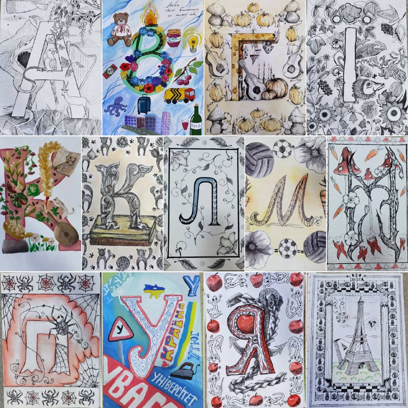 У своїх роботах діти перетворюють літери української абетки на яскраві художні композиції, наповнені орнаментами, рослинними мотивами, народною символікою, казковими образами та власними фантазіями. Кожна буква постає як окрема історія, у якій поєднуються декоративність, колір і емоція.