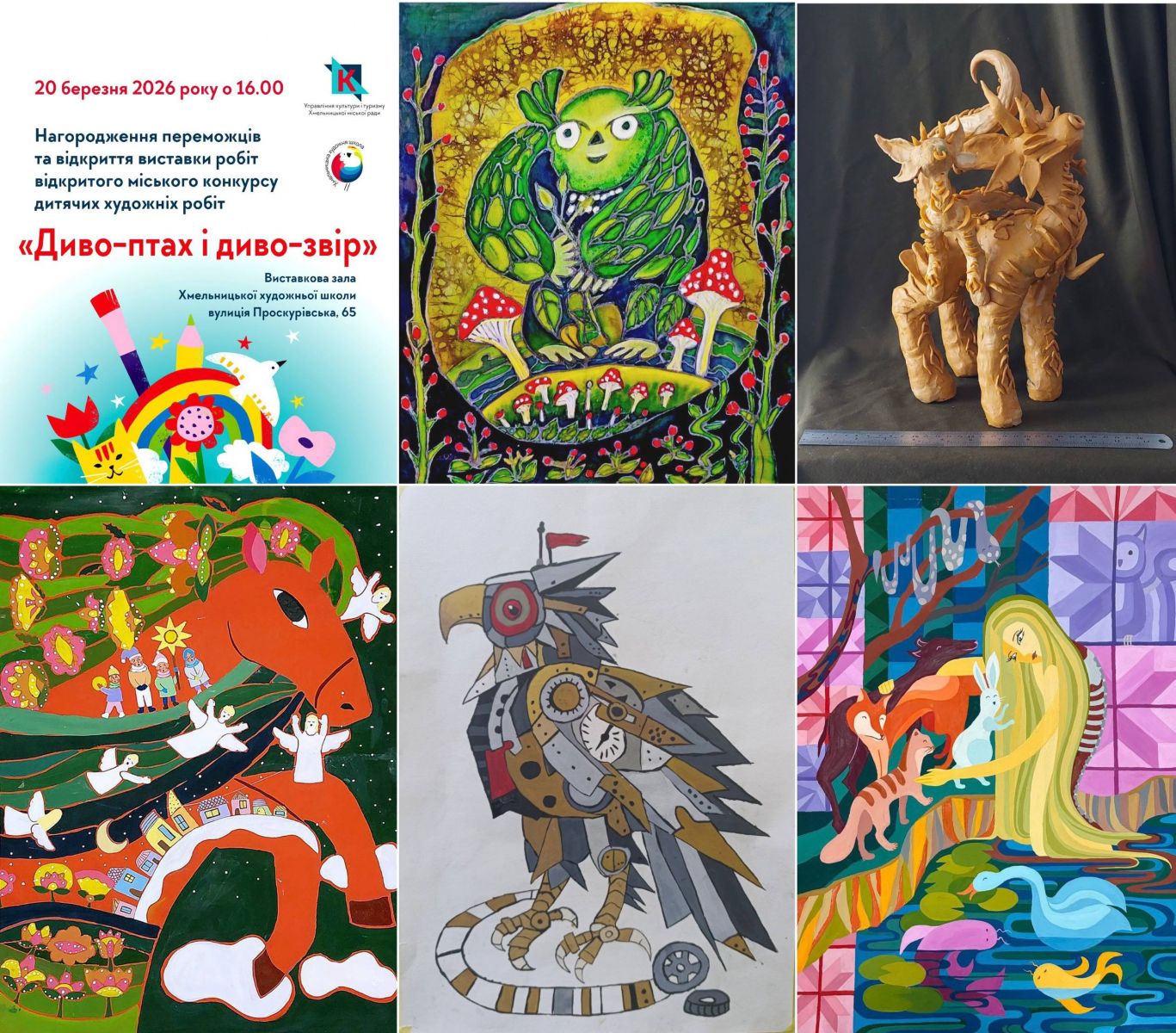 Мистецтво, що лікує природу: у Хмельницькому підбили підсумки відкритого міського конкурсу «Диво-птах і диво-звір» У Виставковій залі Хмельницької художньої школи готується до відкриття унікальна експозиція. Цьогоріч відкритий міський конкурс дитячих художніх робіт «Диво-птах і диво-звір», присвячений Всесвітньому дню дикої природи, об’єднав рекордну кількість учасників: 709 юних митців із 15 міст України. За результатами професійного оцінювання журі обрало 76 лауреатів, чиї роботи стали кращими з кращих. Серед них визначено володарів 1, 2 та 3 місць у різних вікових категоріях.
