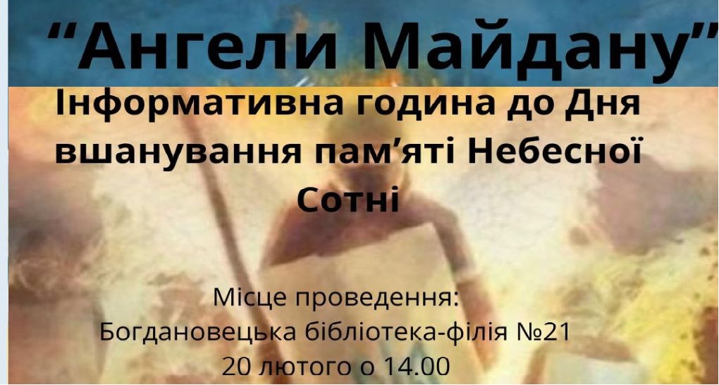 Детальніше20 лютого о 14:00 відбудеться інформативна година до Дня вшанування пам?яті Небесної Сотні "Ангели Майдану". Місце проведення: Богдановецька бібліотека-філія Nº21.