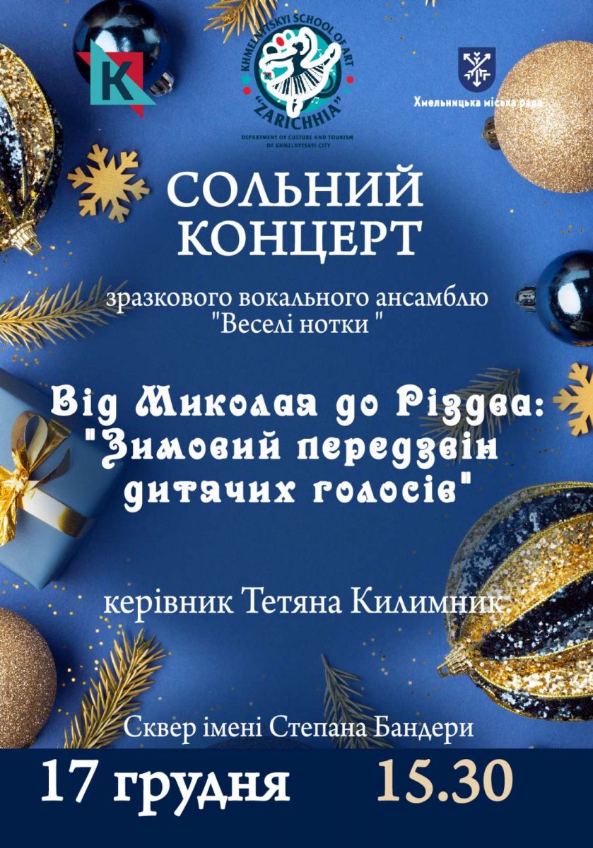Запрошуємо всіх охочих поринути у теплу новорічно-різдвяну казку, наповнену щирими дитячими голосами, святковим настроєм та дивом зимових свят.