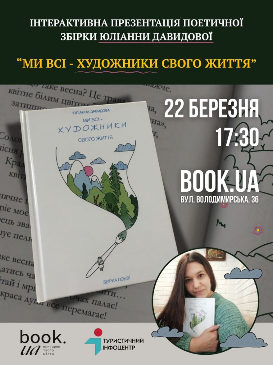 До Всесвітнього дня поезії Туристично-інформаційний центр міста Хмельницький запрошує на особливу зустріч — презентацію поетичної збірки-розмальовки Юліанни Давидової «Ми всі – художники свого життя».