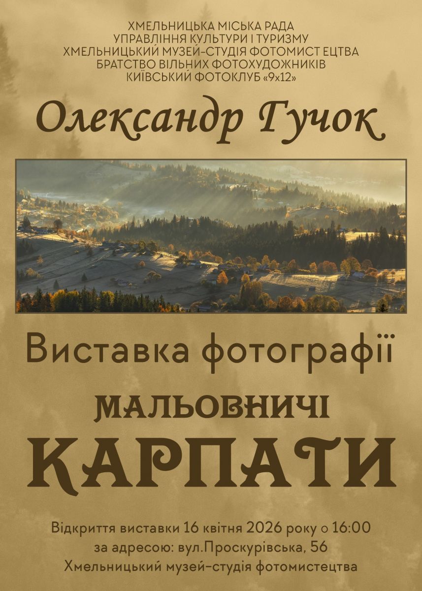 16 квітня о 16:00 в Хмельницькому музеї-студії фотомистецтва відбудеться відкриття фотовиставки «Мальовничі Карпати»