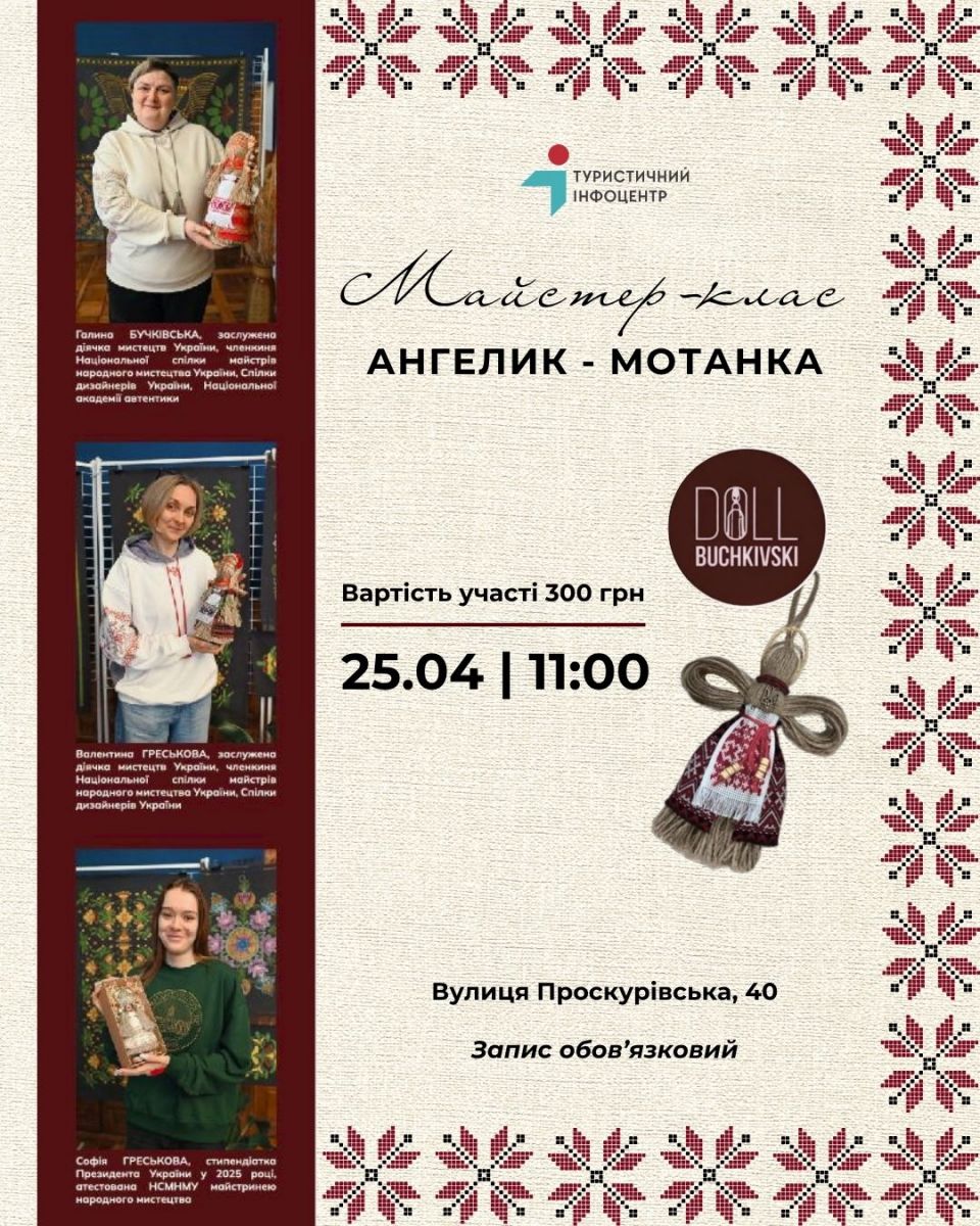 Ви ознайомитеся з історією виникнення ляльки-мотанки, її символікою та значенням у традиційній культурі українців. Окрему увагу приділяємо творчому шляху майстринь і розвитку авторського бренду «DOLL BUCHKIVSKI», який поєднує автентичні техніки з сучасним мистецьким баченням.