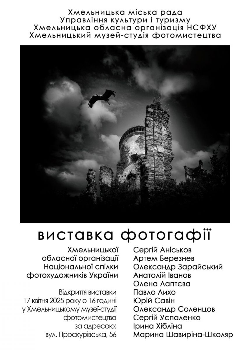 Запрошуємо Вас 17 квітня о 16 годині на відкриття виставки фотографії Хмельницької обласної організації Національної спілки фотохудожників України.