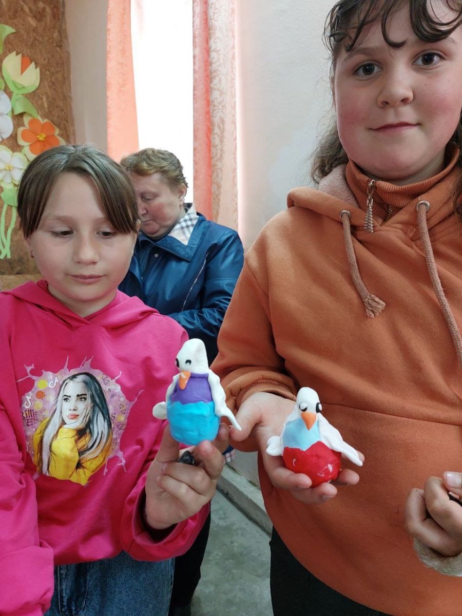 Усі присутні діти із задоволенням доєдналися до майстер-класу викладачки художнього відділення Олени Наумець. З повітряного пластиліну ліпили гусака.