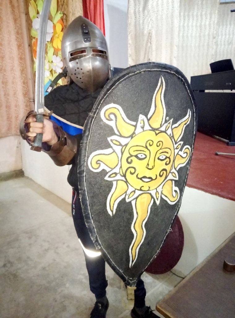 Дітлахи з енергійною і радісною цікавістю взяли участь в інтерактивному огляді, заповзято приміряючи зразки середньовічних шоломів: західноєвропейський бацинет, норманський шолом зі зведеною кольчужною бармицею і ковану латну рукавицю. Взявши до рук ще й реконструйовані копії стародавніх мечів та щитів, майбутні захисники України могли на хвильку уявити себе лицарями Середньовіччя, оборонцями Землі Подільської. Адже, як розповіла досвідчена фахівчиня фондів, саме таку назву в давні часи мало наше Поділля.