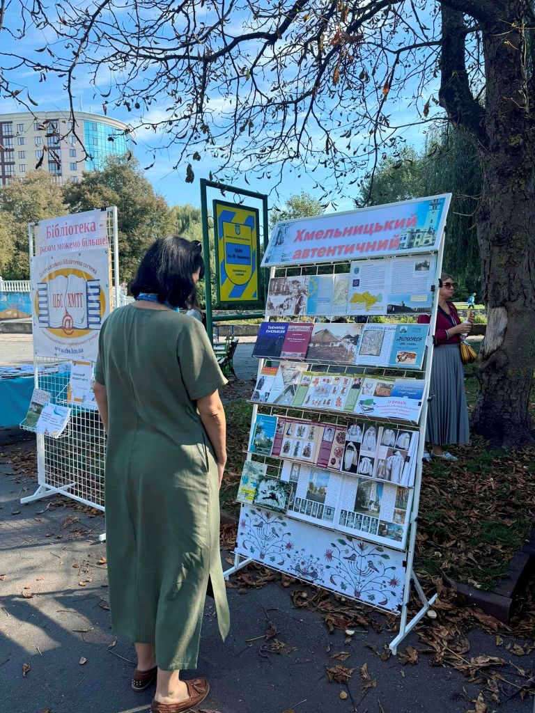 А завершився літературний марафон «Слово єднає — перемогу наближає» 28 вересня. У міському парку ім. М. Чекмана бібліотекарі організували вікторини, майстерки, виставки та інше з нагоди Дня міста в межах облаштування просто неба тематичної локації «Хмельницький автентичний». У такий спосіб Централізована бібліотечна система Хмельницької міської тергромади подарувала хмельничанам і гостям інтелектуальне дозвілля.
