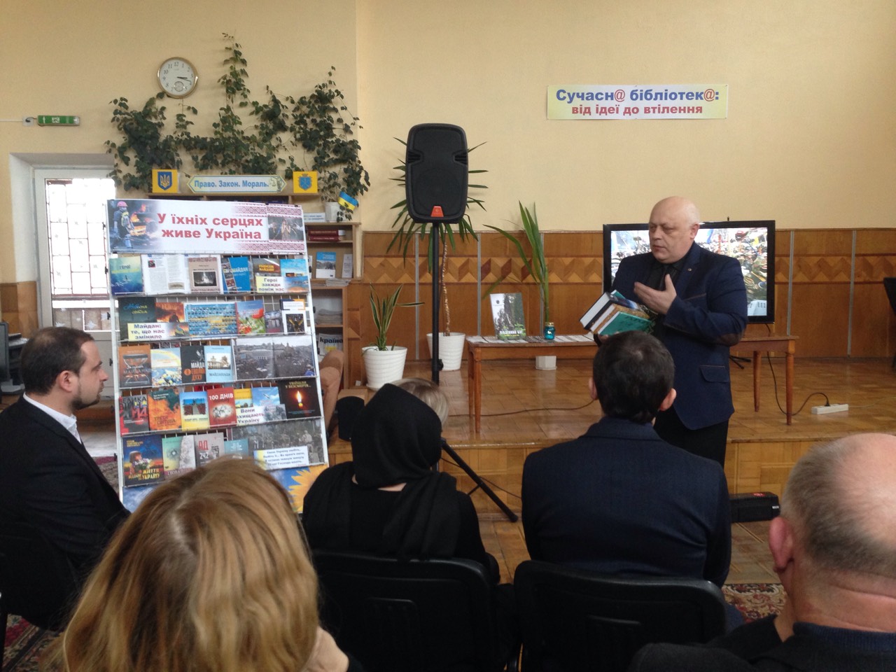 По закінченню презентації кожен із присутніх міг ознайомитися із книжковою виставкою «У їхніх серцях живе Україна», організованою в читальному залі центральної бібліотеки.