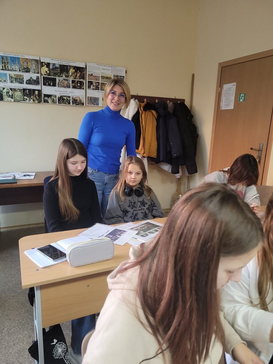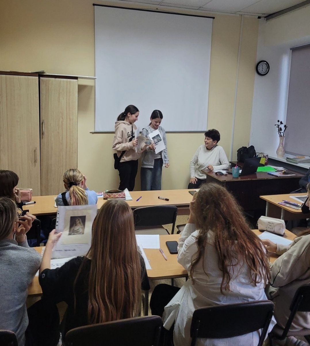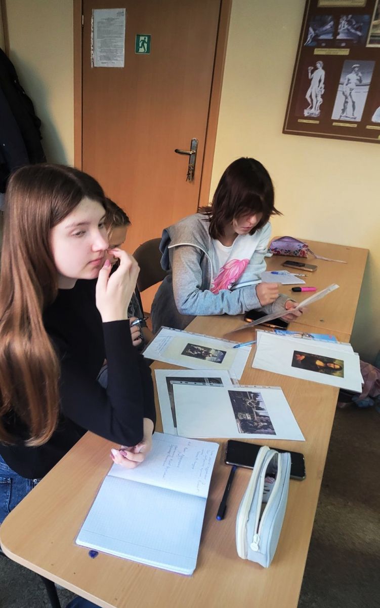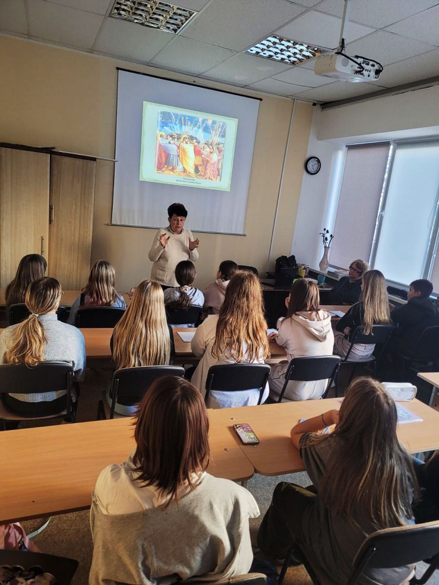 22 жовтня у Хмельницькій художній школі заняття у 3 класі базового підрівня з «історії мистецтва» і «рисунку» були об’єднані у так званий бінарний урок. На ньому розглядались «поріднені» теми – відповідно - «Перспектива у творах художників Раннього Відродження» і «Лінійна перспектива». Першою була викладач-методист Наталія Басова, яка у короткій лекції згадала мистців Проторенесансу і доволі повно розповіла про головних художників Раннього Відродження, в творах яких спочатку вперше, а потім стало закономірним використання повітряної і лінійної перспективи. Оповідь проходила з підтвердженням мовленого картинками на екрані, з використанням запитань до учнів. Учні вже знали з попередніх уроків особливості і лінійної, і повітряної перспектив, тому достатньо легко виконали наступне творче завдання. Клас було розбито на групи по двоє і їм було роздано певну кількість репродукцій картин епохи Відродження, серед яких потрібно було визначити наявність або відсутність того чи іншого виду перспективи. Учні доповідали про виявлені ними ознаки, клас реагував, всі брали участь в обговоренні. А потім свою частину уроку провела старший викладач Наталія Єрьоменко. Вона зробила коротке бліц-опитування, в якому були пригадані основні складові перспективи: точка сходу, лінія горизонту, лінія сходу тощо. А далі кожен учень отримав по чистому аркушу білого паперу, де вгорі був відмічений центр – точку сходу, крізь яку потрібно було протягнути ниточку, що і давала можливість на папері визначити основні лінії, які дозволяли кожному побудувати в лінійній перспективі з великих літер власне ім’я, як колись в давні історичні епохи художники будували зображення в перспективі на площині стіни певної споруди. Учням було надзвичайно цікаво виконувати це творче завдання. Наприкінці уроку були підведені підсумки – всі гарно справились і отримали схвальні оцінки. Директор Марія Барабаш, методистка Людмила Рожко-Павленко, викладачі – ведучі заняття цілком задоволені проведенням такого бінарного уроку.