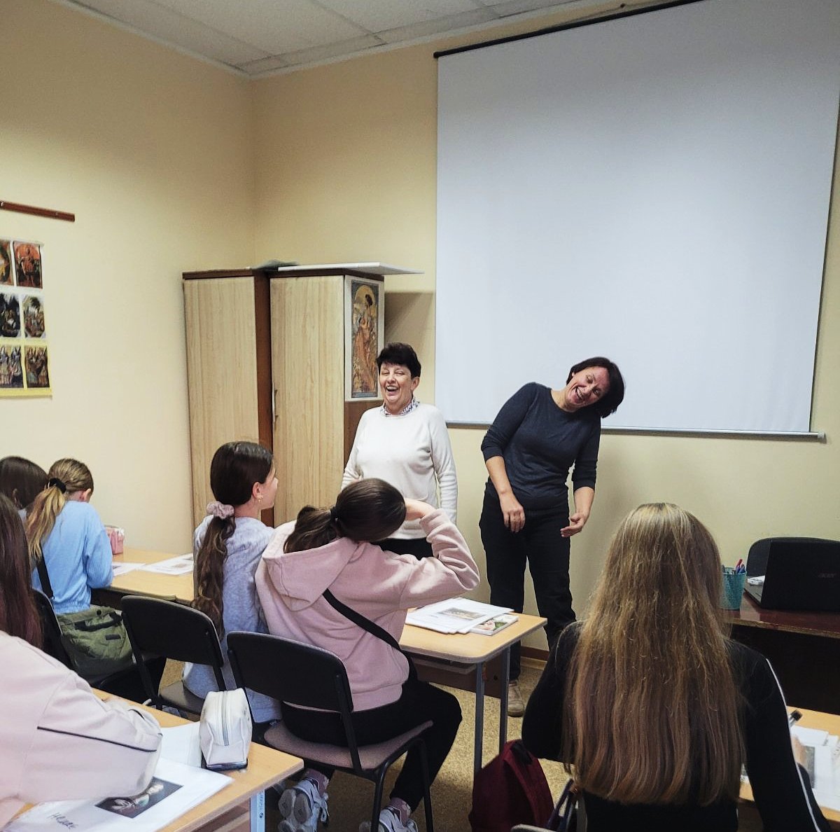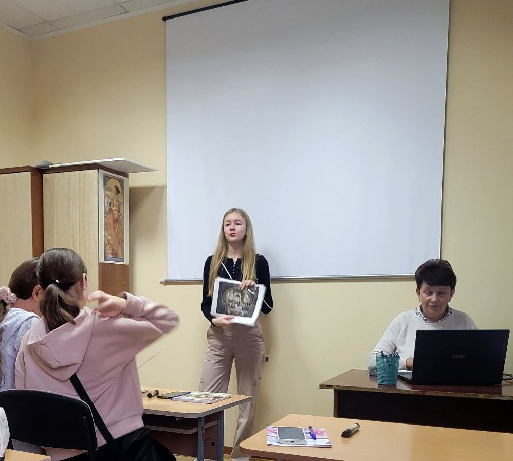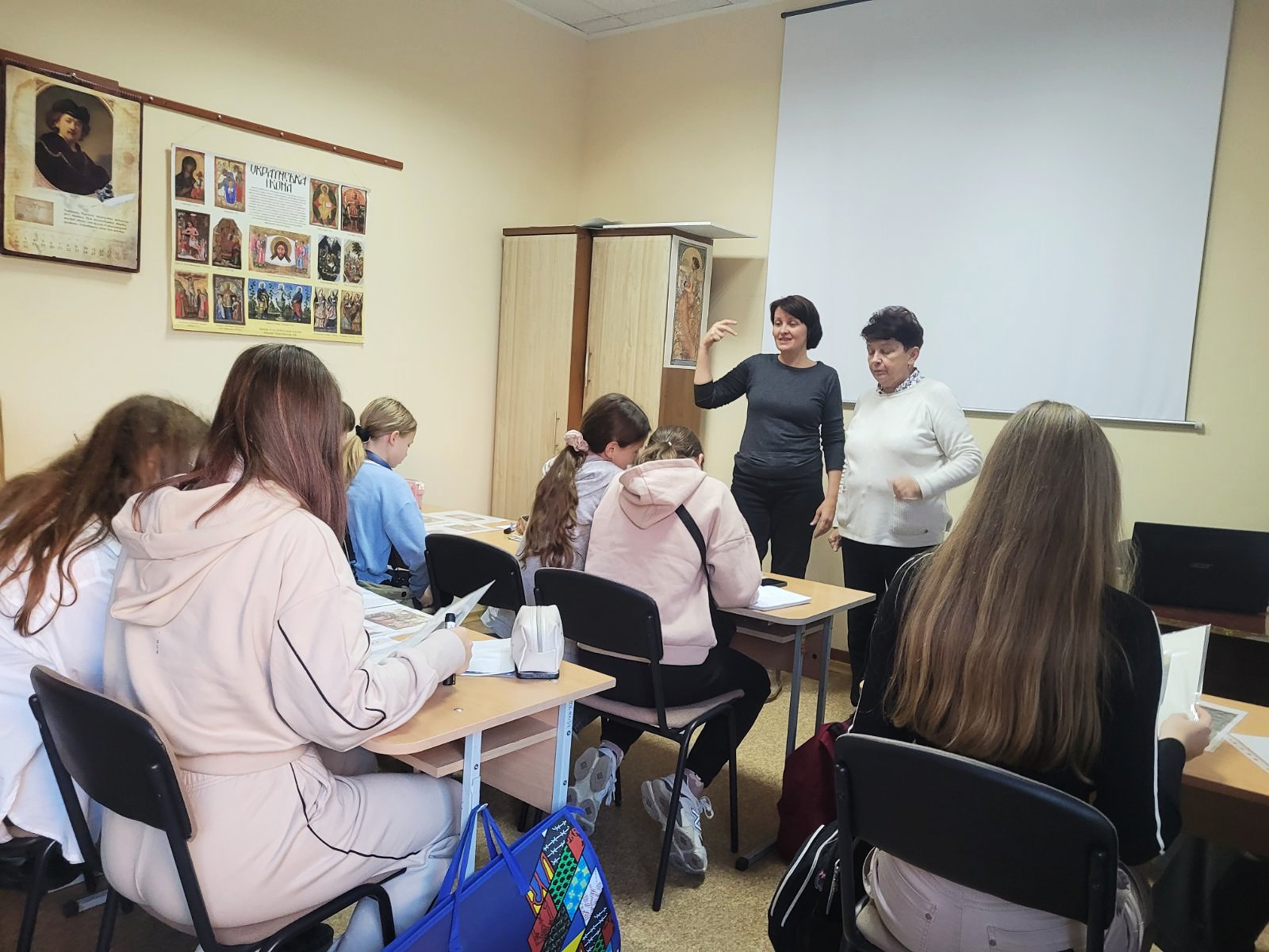 22 жовтня у Хмельницькій художній школі заняття у 3 класі базового підрівня з «історії мистецтва» і «рисунку» були об’єднані у так званий бінарний урок. На ньому розглядались «поріднені» теми – відповідно - «Перспектива у творах художників Раннього Відродження» і «Лінійна перспектива». Першою була викладач-методист Наталія Басова, яка у короткій лекції згадала мистців Проторенесансу і доволі повно розповіла про головних художників Раннього Відродження, в творах яких спочатку вперше, а потім стало закономірним використання повітряної і лінійної перспективи. Оповідь проходила з підтвердженням мовленого картинками на екрані, з використанням запитань до учнів. Учні вже знали з попередніх уроків особливості і лінійної, і повітряної перспектив, тому достатньо легко виконали наступне творче завдання. Клас було розбито на групи по двоє і їм було роздано певну кількість репродукцій картин епохи Відродження, серед яких потрібно було визначити наявність або відсутність того чи іншого виду перспективи. Учні доповідали про виявлені ними ознаки, клас реагував, всі брали участь в обговоренні. А потім свою частину уроку провела старший викладач Наталія Єрьоменко. Вона зробила коротке бліц-опитування, в якому були пригадані основні складові перспективи: точка сходу, лінія горизонту, лінія сходу тощо. А далі кожен учень отримав по чистому аркушу білого паперу, де вгорі був відмічений центр – точку сходу, крізь яку потрібно було протягнути ниточку, що і давала можливість на папері визначити основні лінії, які дозволяли кожному побудувати в лінійній перспективі з великих літер власне ім’я, як колись в давні історичні епохи художники будували зображення в перспективі на площині стіни певної споруди. Учням було надзвичайно цікаво виконувати це творче завдання. Наприкінці уроку були підведені підсумки – всі гарно справились і отримали схвальні оцінки. Директор Марія Барабаш, методистка Людмила Рожко-Павленко, викладачі – ведучі заняття цілком задоволені проведенням такого бінарного уроку.