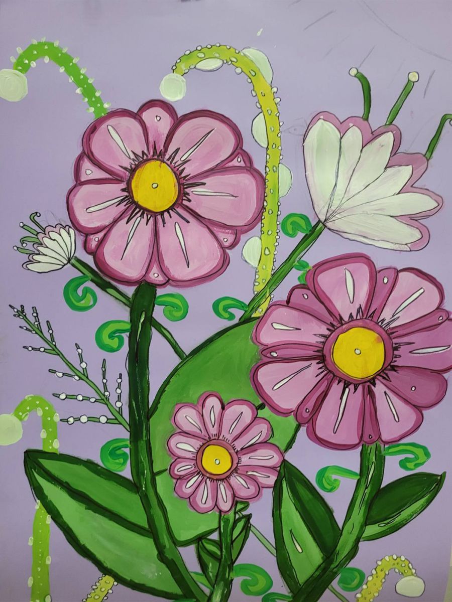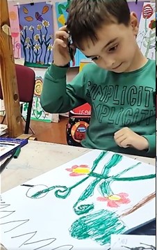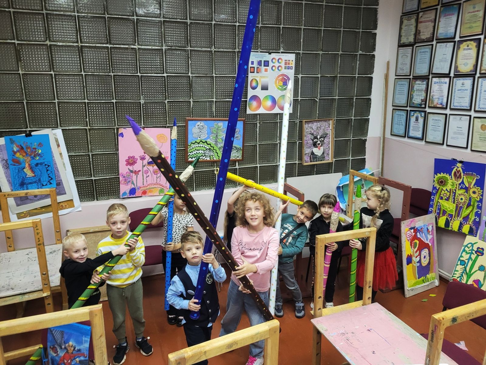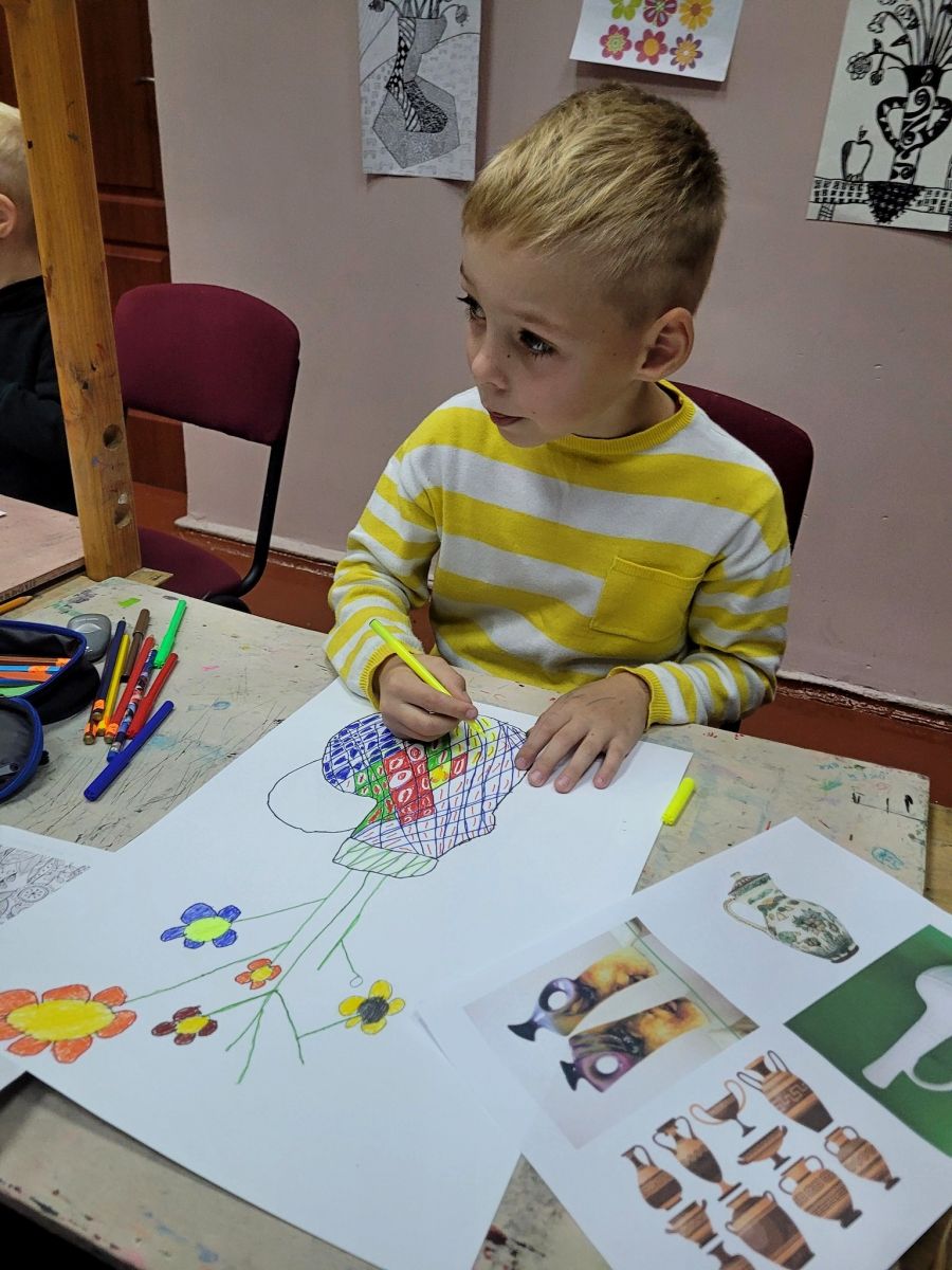 Найменшенькі наші учні – шестирічки. Вони займаються в аудиторії у чергу з третьокласниками у Марії Владиславівни Барабаш у першому класі елементарного підрівня. Навколо них квітнуть яскраві квіти, створюючи гарний настрій, спонукаючи малювати так само, а може, й краще. Створені старшими учнями квіткові натюрморти, вже закінчені, прикріплені до стін, ті, що мають доопрацьовуватись, стоять біля них, спираються на мольберти. Практика створення позитиву, налаштування на результативну роботу завдяки демонстрації кращих учнівських робіт застосовується в кожному з навчальних класів Хмельницької художньої школи. Малеча так само відповідально підходить до кожного завдання, прагнучи якнайкраще його виконати. Напередодні Дня художника найменшеньким нашим мистцям вдалось приміряти під себе величезні олівці, як своєрідне посвячення у художники. А потім на тлі прикрашеної мальованими квітами аудиторії самим намалювати найкращі натюрморти. Згодом кращі роботи, які вабили зір в шкільній аудиторії, відправились до інших діток – до арт-простору Хмельницької міської дитячої лікарні, де вони вже тепер будуть піднімати настрій малим пацієнтам, щоб ті якомога швидше справились зі своїми недугами. Нехай в кожнім саду, незважаючи на пори року, квітнуть сезонні квіти, ваблячи зір, надихаючи позитивом! Нехай в кожній родині, наче гарні квіти, підростають діти на радість батькам і суспільству! А юні художники завжди будуть цьому сприяти своїми творами!