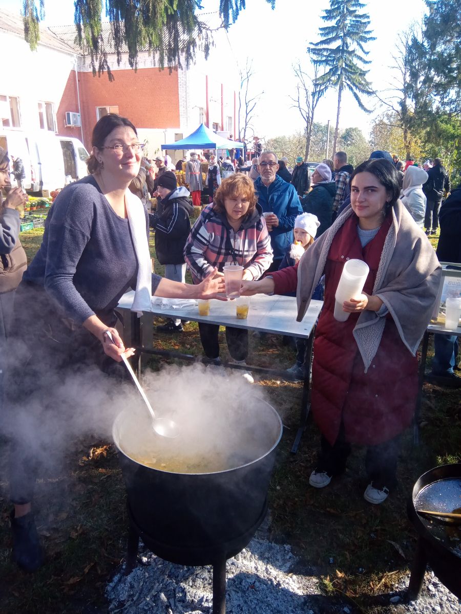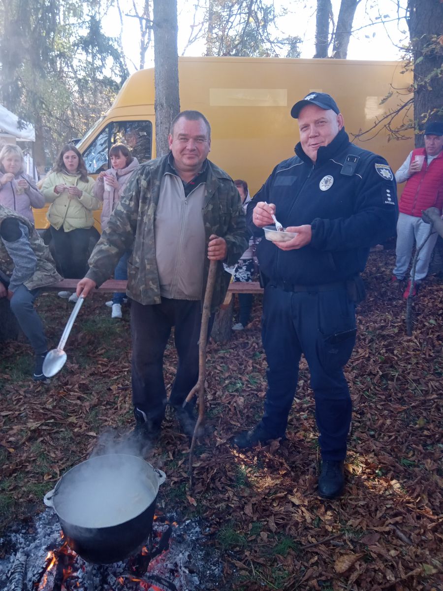Кожен присутній зміг скуштувати смачну рибну юшку, вареники зі шкварками, зігрітися теплим чаєм та кавою.