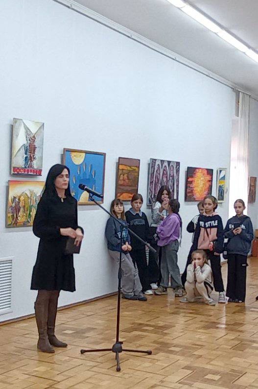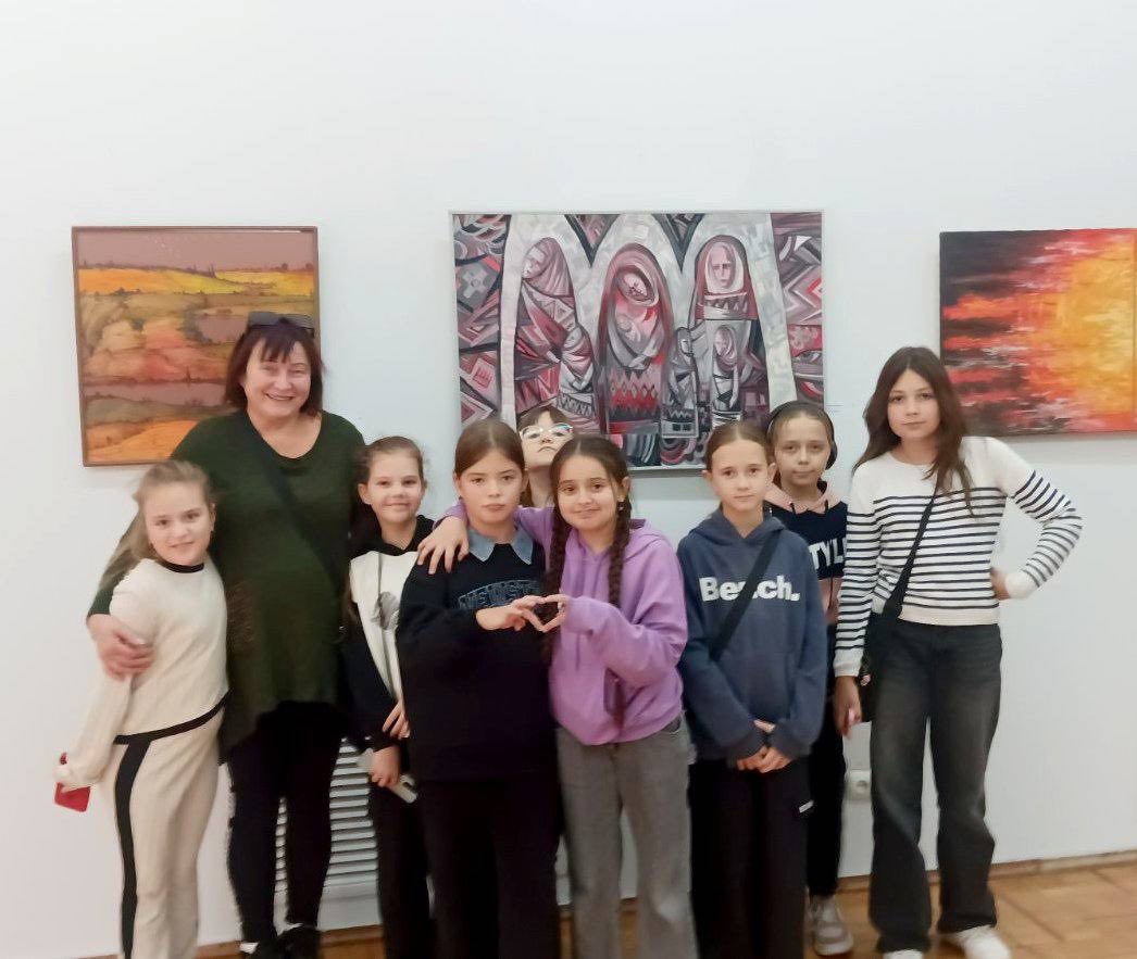 Минулого четверга, 25 жовтня 2024 року, у Хмельницькому обласному художньому музеї відбувся вернісаж цікавої виставки «Об’єднані Збручем», на якій було представлено 60 різноманітних творів членів двох обласних організацій НСХУ – Тернопільської і Хмельницької. Тут не загубились твори наших викладачів: Надії Борецької (член спілки з 1993 року) і Вадима Піщерського (член спілки з 2021 року, з першого дня широкомасштабної війни – воїн ЗСУ). Талановита мисткиня у багатьох видах і жанрах образотворчості Надія Борецька вже 20 років викладає у Хмельницькій художній школі. Відбулось кілька десятків її персональних виставок і виставок з її участю не лише в Україні, а й у далекій Америці, Канаді, Польщі, Молдові, Литві, Китаї, навіть на Кіпрі. І щоразу, коли у нашому обласному художньому музеї відбувається певна подія, де представлені сучасні майстрі, Надія Анатоліївна завжди відвідує вернісаж з своїми юними вихованцями. От і цього разу учні 2-Є класу базового підрівня не могли натішитись можливістю потрапити до музею, побачити твори улюбленої вчительки, познайомитись з роботами інших мистців, про яких вона їм багато розповідала. Вони уважно слухали куратора виставки Марину Заславську, виступи голів споріднених спілок – Андрія Дороша з Тернополя і Миколу Мельничука з Хмельницького. Їх приваблювали і витинанки, виконані нашими жінками- художницями Анною Скрипало. Оленою Савчук і Ганною Ерменчук-Гручман, бо ж і самі під керівництвом викладача пробують свої сили у створенні витятих «шедеврів». Наші юні художниці захоплювались живописними і графічними творами і хмельничан, і тернополян, а також роботами в інших видах і техніках. А надто цікаво було познайомитись з Ігорем Дорошом, якому дуже сподобалось, що майбутні художники відвідують подібні заходи. Зазнайомившись з нашими учнями, пан Андрій пообіцяв запросити їх до славного міста Тернополя, коли там проходитиме подібний вернісаж, куди спілка обов’язково запросять учнів місцевої художньої школи. Словом – на вернісажу було і гарно, і цікаво, і повчально! Дякуємо ХОХМ за запрошення! Ми прийдемо ще!