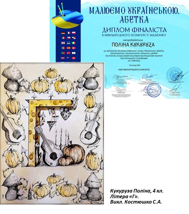 Наша школа вже вдруге бере участь у конкурсі. Маємо що поки дипломи не першого ступеня, але в наших юних художників ще все попереду! Головне, що мову люблять наші викладачі, нею спілкуються діти вдома і в школі, отже і малювати вони будуть залюбки такі красномовні і цікаві літери української абетки.
