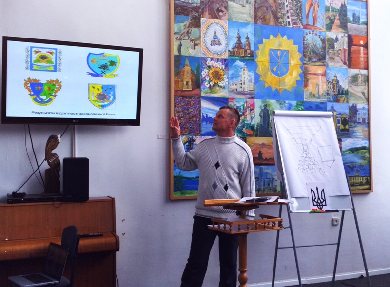 З цікавістю наукове товариство зустріло й доповідь відомого в Україні геральдиста, письменника, автора численних видань з геральдики Валерія Напиткіна. У своїй роботі «Сучасна геральдика ОТГ» пан Валерій окреслив проблеми сучасної геральдики, створюваної для об’єднаних територіальних громад за відсутності відповідної законодавчої бази.