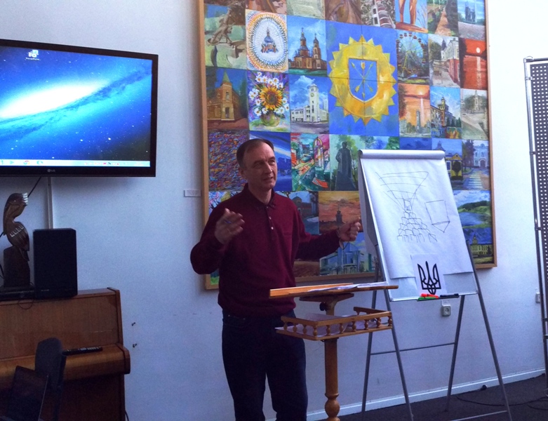 Пан Куфльовський зізнався, що, готуючи свою доповідь «Українська символіка та її еволюція», опрацював близько двадцяти книжок з цієї тематики, що дозволило доповідачеві зробити детальний аналіз поняття «символ», його походження та зовнішнього впливу на свідомість людини. Чи не найбільшу зацікавленість в аудиторії викликали аналітичне співставлення паном Валерієм символіки державних прапорів двох держав: України та Ізраїлю та детальний аналіз гербу Хмельницької області, який досі викликає певні дискутування серед знавців геральдики.