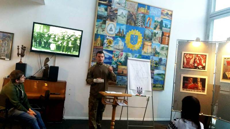 А Олександр Процун, голова Хмельницької скаутської організації «Пласт», розпочав свою доповідь з того, що ХХ століття відоме своїми війнами, та часом, коли українські патріоти двічі намагались заснувати і відновити Українську державу. Від пана Процуна аудиторія не тільки дізналась про історію українського пластунського руху, а й про те, що саме з учасників патріотичних молодіжних організацій свого часу сформувалося ядро Легіону Січових Стрільців, «Пласт» забороняли і в Україні, і в Польщі, а у 1929 році зі створенням Організації Українських Націоналістів (ОУН) в їхні лави вливаються і пластуни. Варто зазначити, що дев’ять генералів ОУН були пластунами, зокрема, один з них – голова проводу ОУН генерал Роман Шухевич. Присутні також дізналися і про пластівську діяльність в еміграції. Наостанок пан Олександр зазначив, що сучасні пластуни брали участь у всіх революціях, майданах, АТО, серед них є й загиблі; а сучасні військово-патріотичні молодіжні організації «Пласт» і «Січ» – це організації, котрі виховують українського лідера.