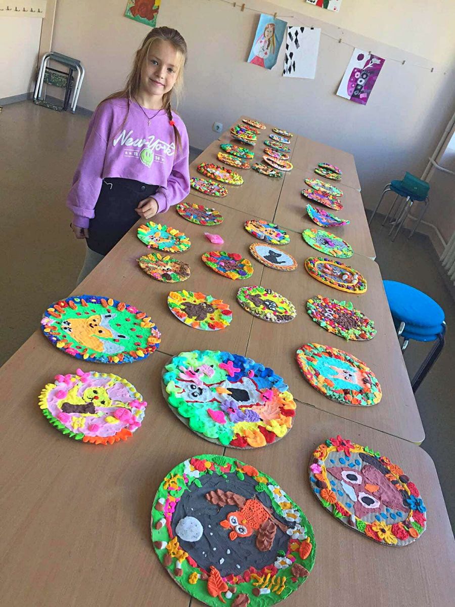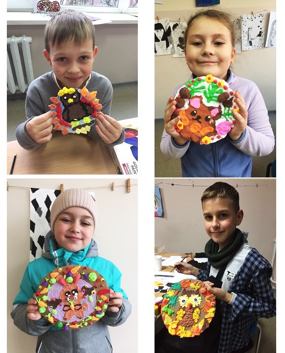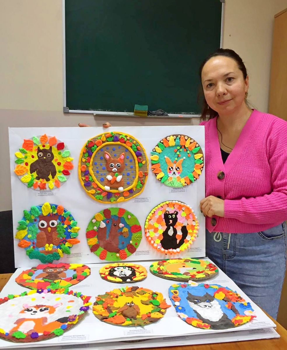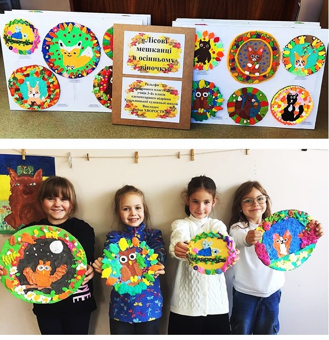 Вони довго готувались, бо знали, що їхні роботи будуть бачити не звичайні громадяни: малі й дорослі, а з ними будуть знайомитись дітки, які знаходяться у лікарні і це допоможе їм одужати. Мова йде про учнів 3-4 -х класів елементарного підрівня Хмельницької художньої школи, яких навчає любити цей світ, відтворювати його за законами краси викладачка Любов Хворостюк. Це не так просто – спочатку знайти, а то й самотужки вирізати з цупкого картону коло (а він піддається різанню важкувато, та й не дуже рівненько виходить), щоб потім по краю оздобити його у вигляді рельєфного віночку, а в середину такого ось декоративного вінка вмістити якусь тваринку, яка найбільше подобається! І все це зробити смужками, джгутиками, малесенькими кульками, спиральками, пластинками, що потім стануть очками, щічками, вушками, хвостиком або й тільцями тваринок, а ще гілочками, листочками, пелюсточками, а то й цілими квітками, які виконані-виліплені з повітряного пластиліну у вигляді рельєфу на площині картонного кола! Всі роботи виявились такими святковими і яскравими, що учні впевнені – хворим діткам в лікарні, які обов’язково скоро одужують, їхні роботи сподобаються і піднімуть настрій! І ще виставку готували заздалегідь, а завершували в дні осінніх канікул, щоб приурочити її до Всесвітнього дня дитини і Дня педіатра. 21 листопада всі роботи були розміщені і підписані на картонних планшетах і виставка поїхала до лікарні. А там позитивні, світлі і кумедні звірятка і домашні пухнастики, виконані в яскравій кольоровій манері, були виставлені на мольбертах у Арт-просторі медичного закладу. Нехай діє ще один метод одужання – терапія мистецтвом!