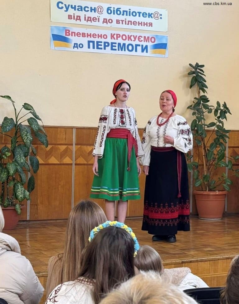 Також у читальній залі бібліотеки до події розмістили виставку творчих робіт учнів художнього відділення Хмельницької школи мистецтв «Райдуга» «Малюємо українською». У межах літературно-музичного вечора її представили тим, хто завітав. Окрім того, бібліотекарки оформили тематичну книжкову виставку.