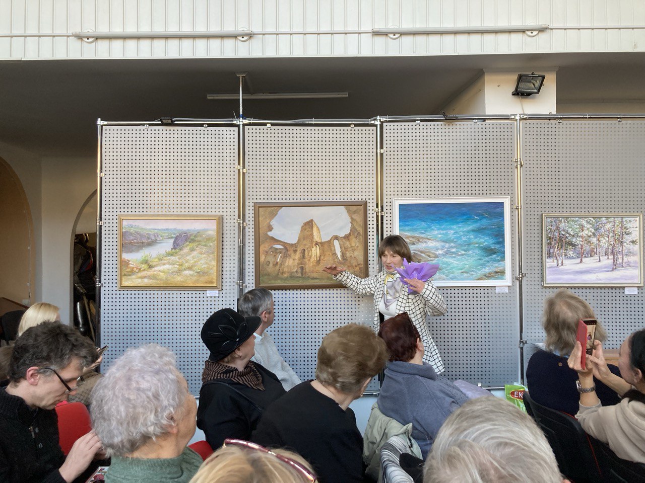 З великим захопленням гості дізнавалися про життєвий та творчий шлях художників, пошуки й знахідки у великому мистецтві творення художніх образів. Любов Миленька народилася в Запоріжжі – на батьківщині козацької вольниці, її батько - з діда-прадіда запорізький козак. Мальовнича, щедра природа Наддніпрянщини, перекази легендарного острова Хортиця з дитинства закарбувалися світлими спогадами в її серці й стали джерелом натхнення на все життя. В експозиції представлені її твори на цю тему: «Перший сніг на Хортиці», «Сонячна стежка на Хортиці», «Весняний ранок на Хортиці», котрі дуже влучно унаочнюють душевне ставлення авторки до рідних місцин, її неповторно м`яку манеру письма на полотні, скрупульозну увагу до деталей, трепетну залюбленість у предмет свого зображення, котре художниця доводить до такого вдосконалення, що її картини дихають та міняться кольорами й світлом, наче живі істоти. Саме тому, за зізнанням мисткині, кожна робота, в яку вкладено стільки любові та душевних сил, дорога їй, наче власна дитина. Пані Любов провела експрес-екскурсію своєю експозицією, розповіла про історію створення та цікаві секрети, зашифровані в її картинах. Приміром, гостям пощастило дізнатися таємниці символіки її свіжої роботи «На варті віків. Фортеця. Старокостянтинів», 2024 р. Надзвичайно цікавий ракурс обрала, інноваційний підхід виявила художниця в зображенні відомої краянам пам`ятки архітектури - сторожової башти в Старокостянтинові. В анасамлі з древніми стінами укріплень вежа поглядом ізсередини на її полотні являє собою український тризуб, виступає як монументальний знак нашої сили, стійкості, звитяги, та ще асоціюється з птахом-орлом, котрий закриляє місто над Случчю, оберігаючи від злих сил. Маленький штрих – трек від літака в різнобарвно іскристому безхмарному небі над твердинею - наче ДНК-хромосома незламної української нації, навіки прописана на усіх семи небесах над цією, Богом даною, українцям землею. Кожна робота художниці – довершений шедевр. І І це - не лише завдяки тому, що Любов Павлівна здобула гідну освіту: закінчила Одеське державне училище імені М. Грекова, навчалася в Українському поліграфічному інституті ім. І. Федорова та Московському вищому художньо-промисловому училищі. А й – наслідок її невтомної праці над собою, колосального досвіду праці й самовдосконалення на мистецьких фестивалях, пленерах, виставках, багатьох років викладацької роботи. І нині вона, окрім того, що самовіддано передає свій досвід студентам, ще й натхненно, іноді, справді, до самозречення, але плідно, результативно працює у своїй творчій майстерні тут, у Хмельницькому. Її роботи прикрашають приватні колекції в Україні, ближньому й дальньому зарубіжжі.
